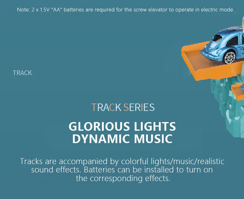 Batería de la pista Lion Rock: lighthouse 2 * AAA (no incluido)/ebase del elevador 2*AA (no incluido)