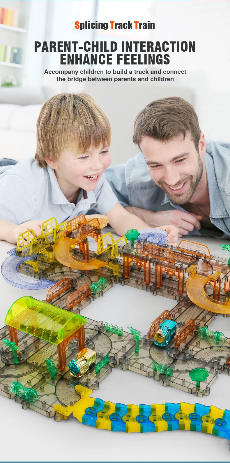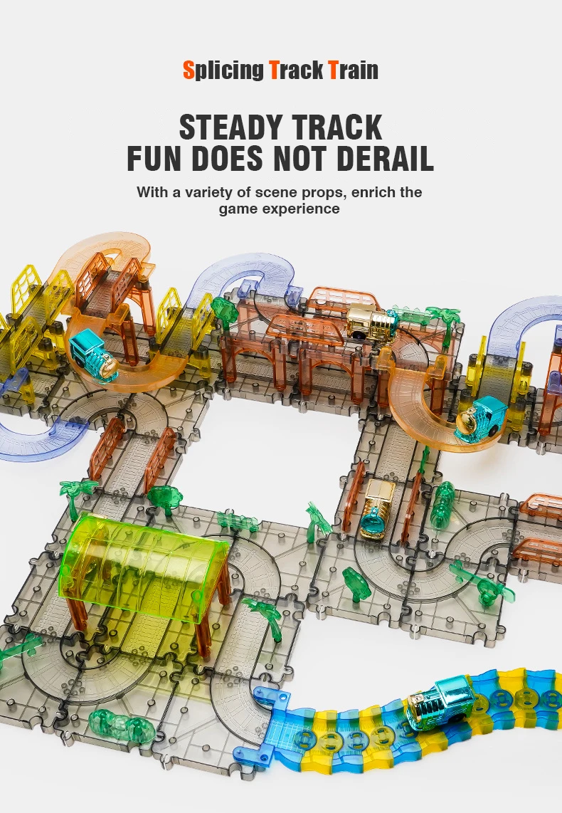 3.Posibilidades infinitas de seguimiento: Race Track Set es una forma divertida para que niños y niñas amplíen su curiosidad intelectual y creatividad explorando muchas posibilidades.