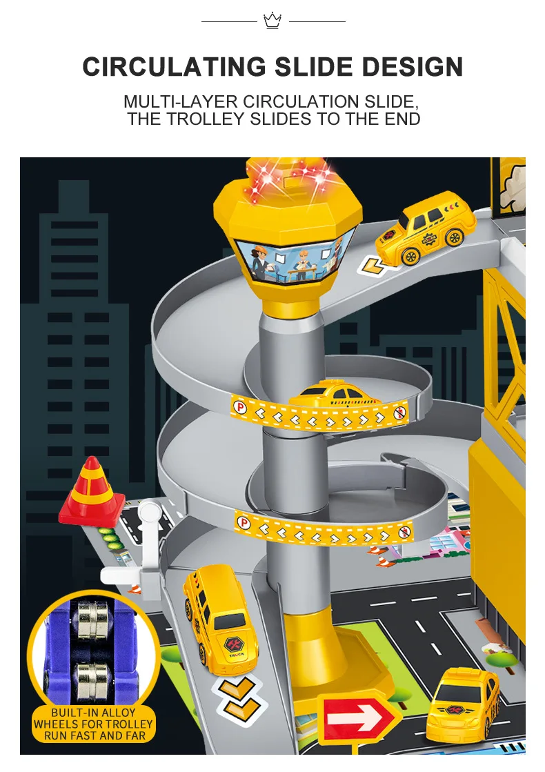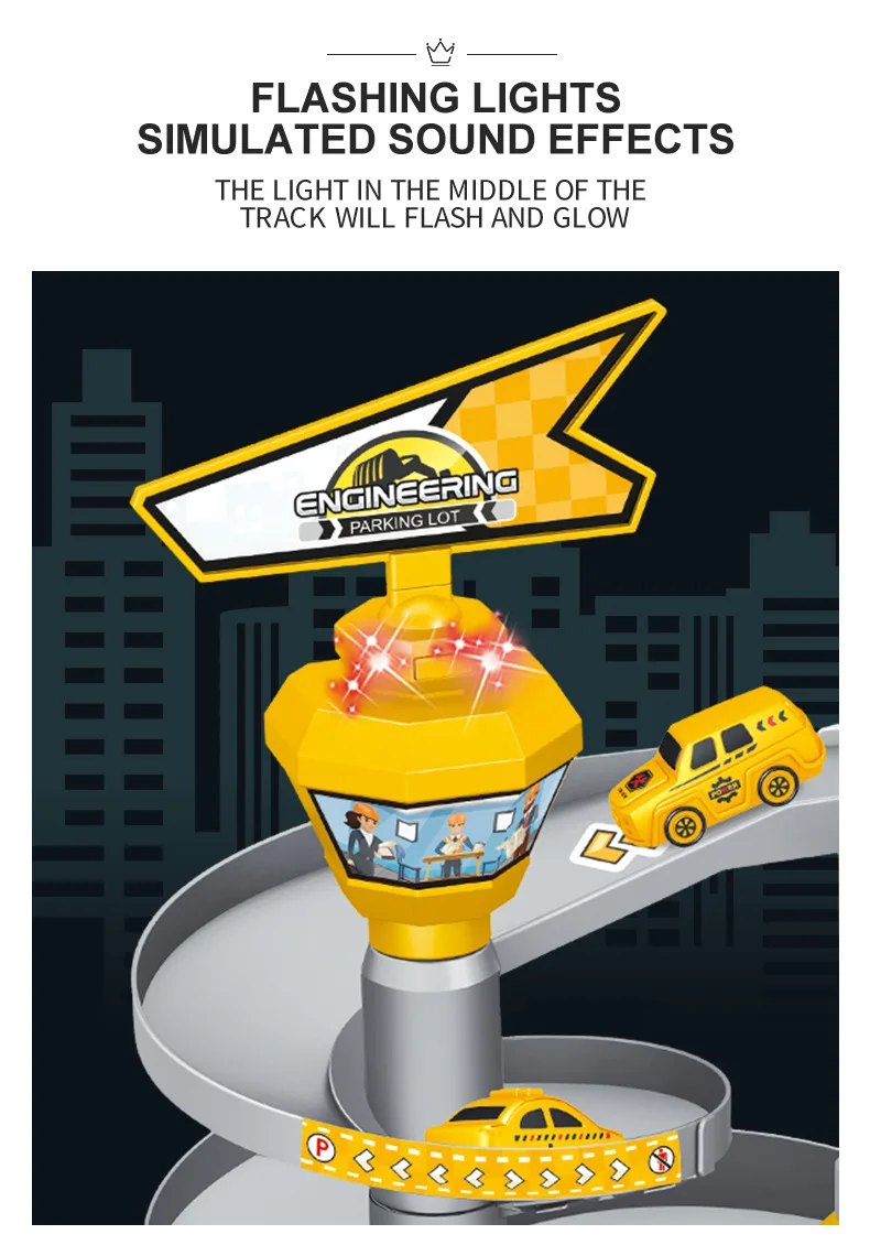 El diseño de la pista ultrarrápida permite a los niños experimentar velocidad y pasión, la luz en el medio de la pista parpadeará y brillará para experimentar más diversión, deslizamiento de ciclo multicapa, el automóvil se desliza hasta el final, proceso de molienda riguroso, textura redonda, no daña la piel del bebé, el uso de material ABS seguro, puede estar seguro de que el bebé puede jugar