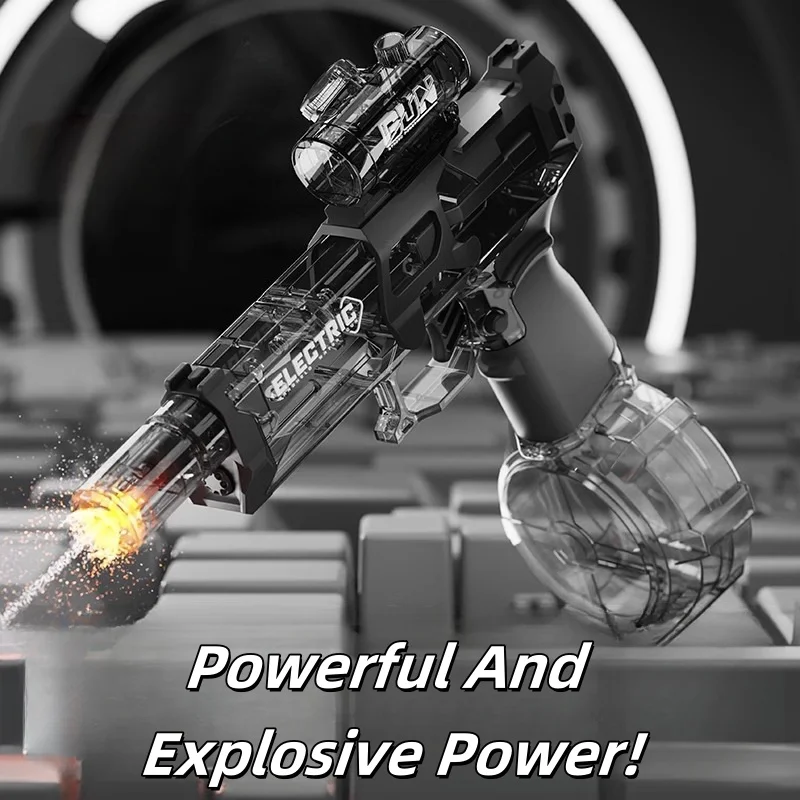 Pistola de agua eléctrica de disparo continuo totalmente automática con llama de bozal, juguete de batalla de playa al aire libre de verano de gran capacidad