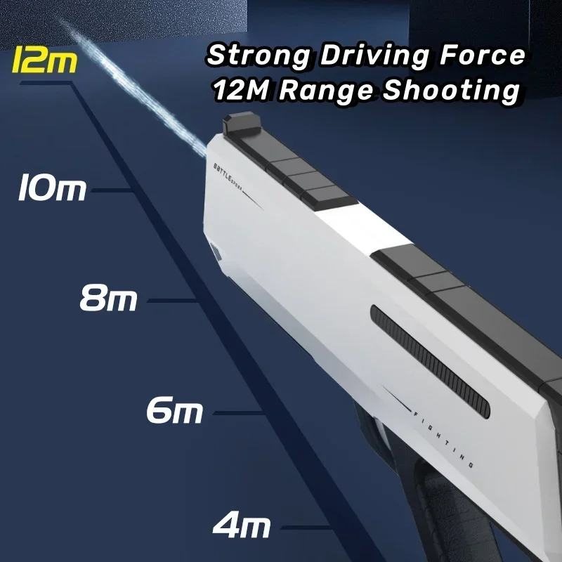 La pistola dispara un máximo de 5 m, no 12 m como se anuncia. En general, la pistola no está tan mal.