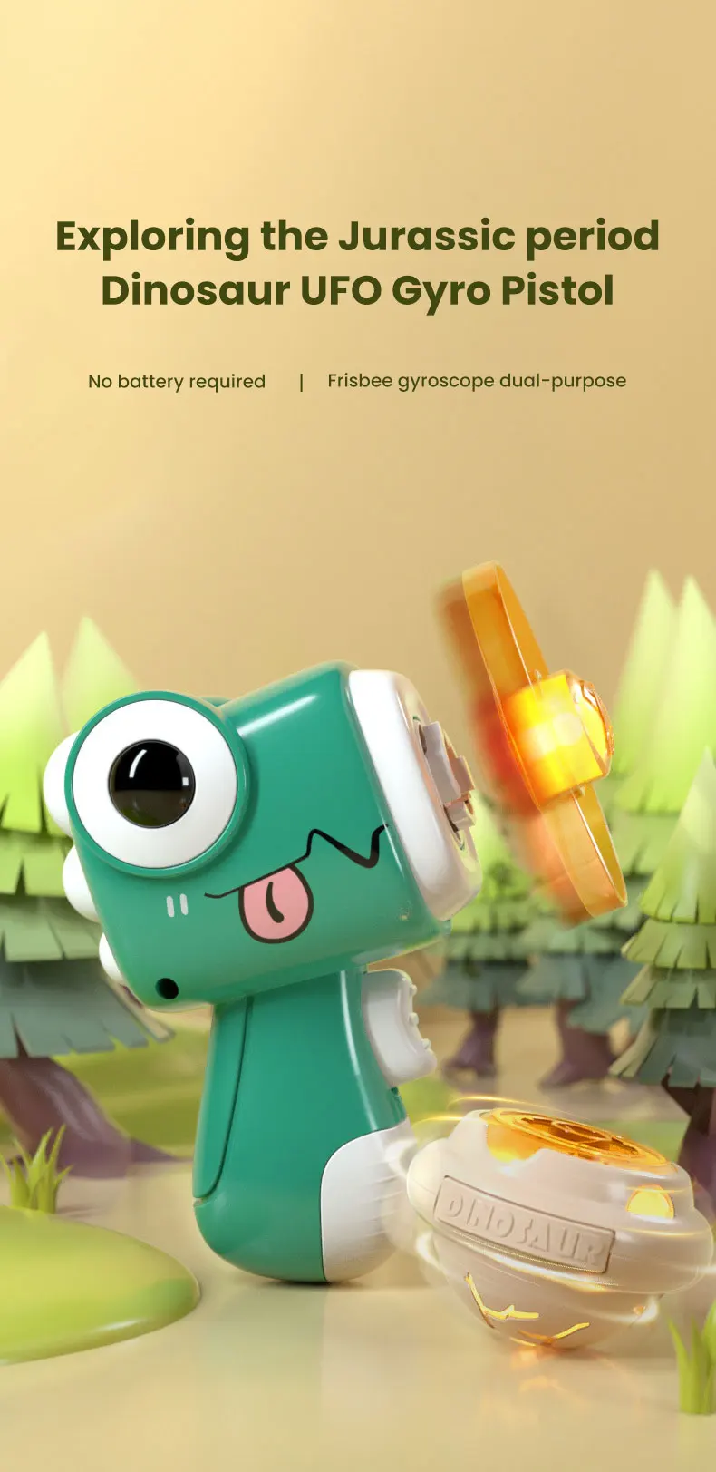 Pistola giroscópica OVNI para niños, rotador de eyección de dinosaurio, pistola de tiro luminosa para deportes al aire libre, juguete giroscopio de eyección