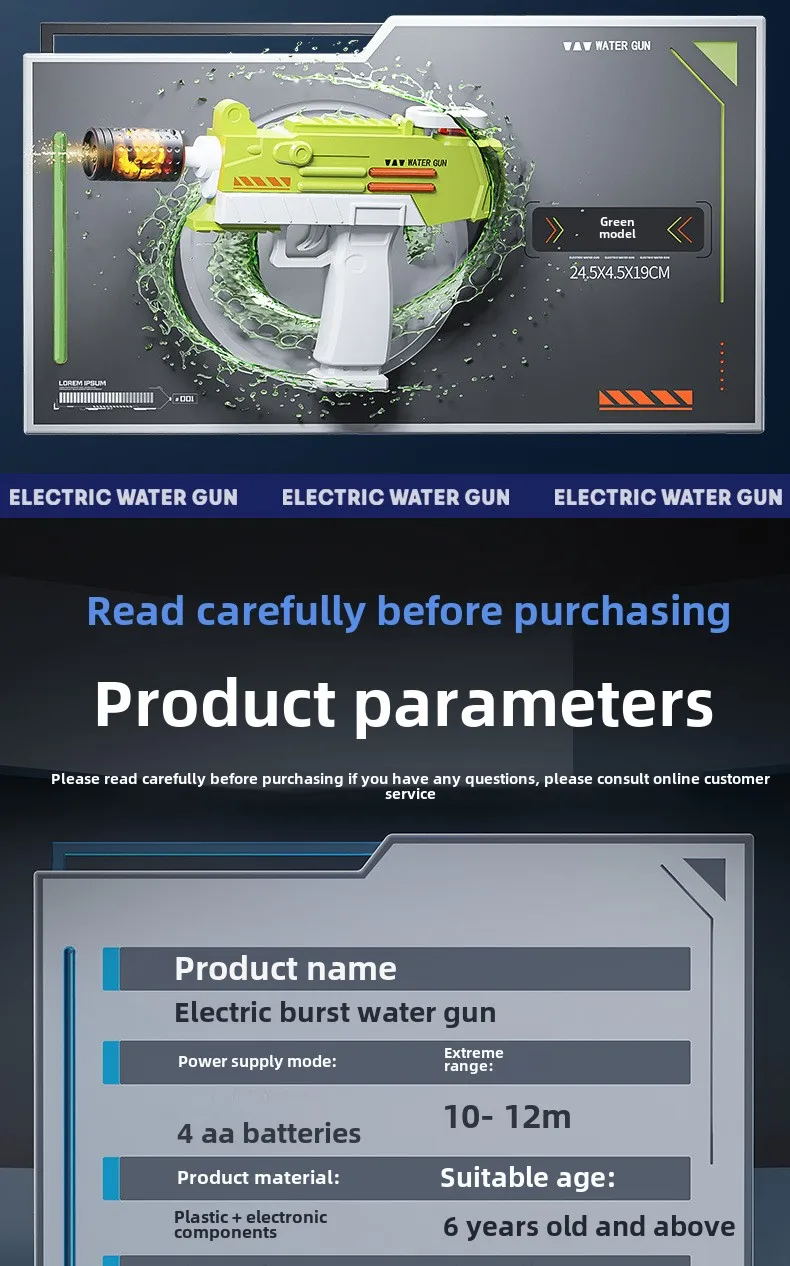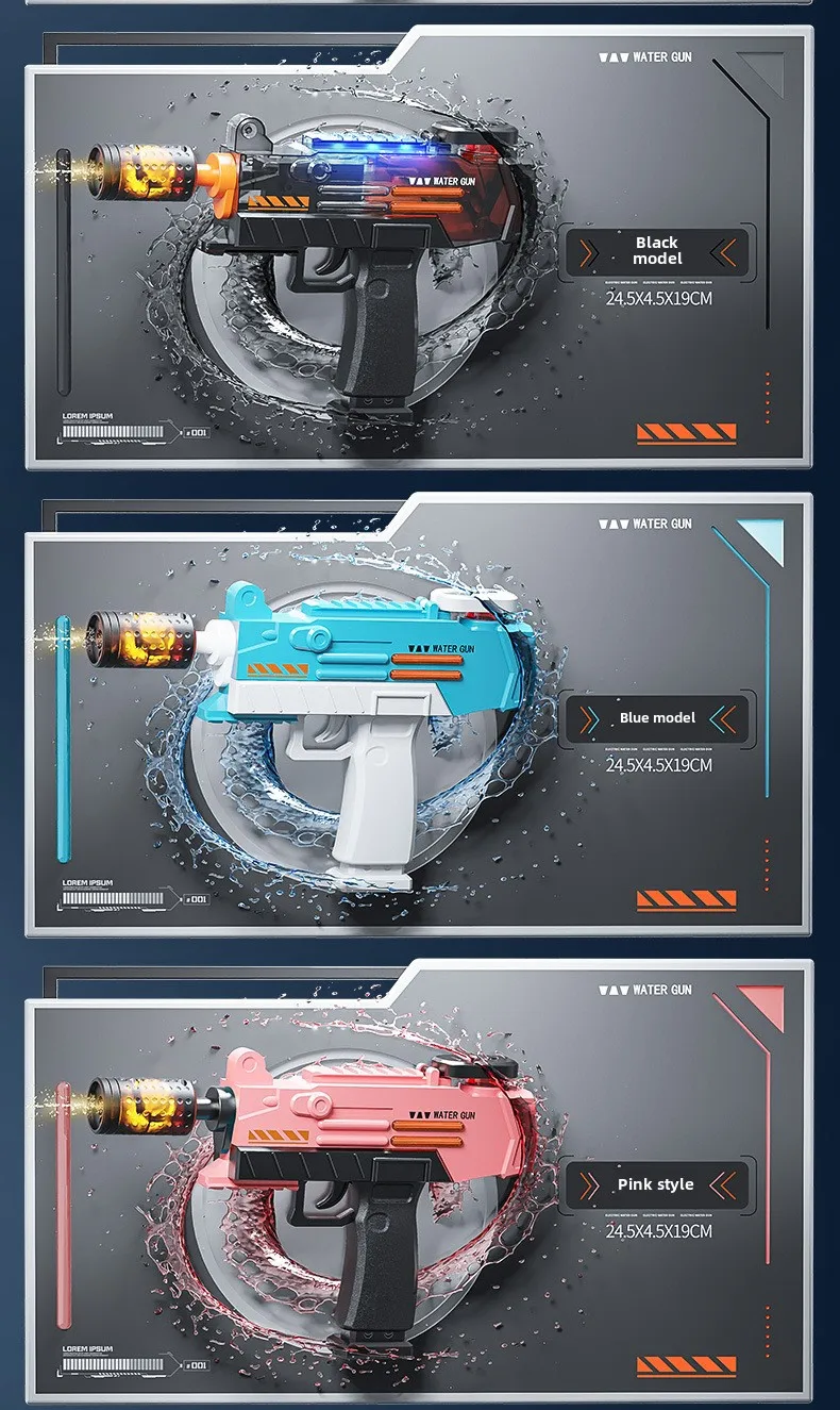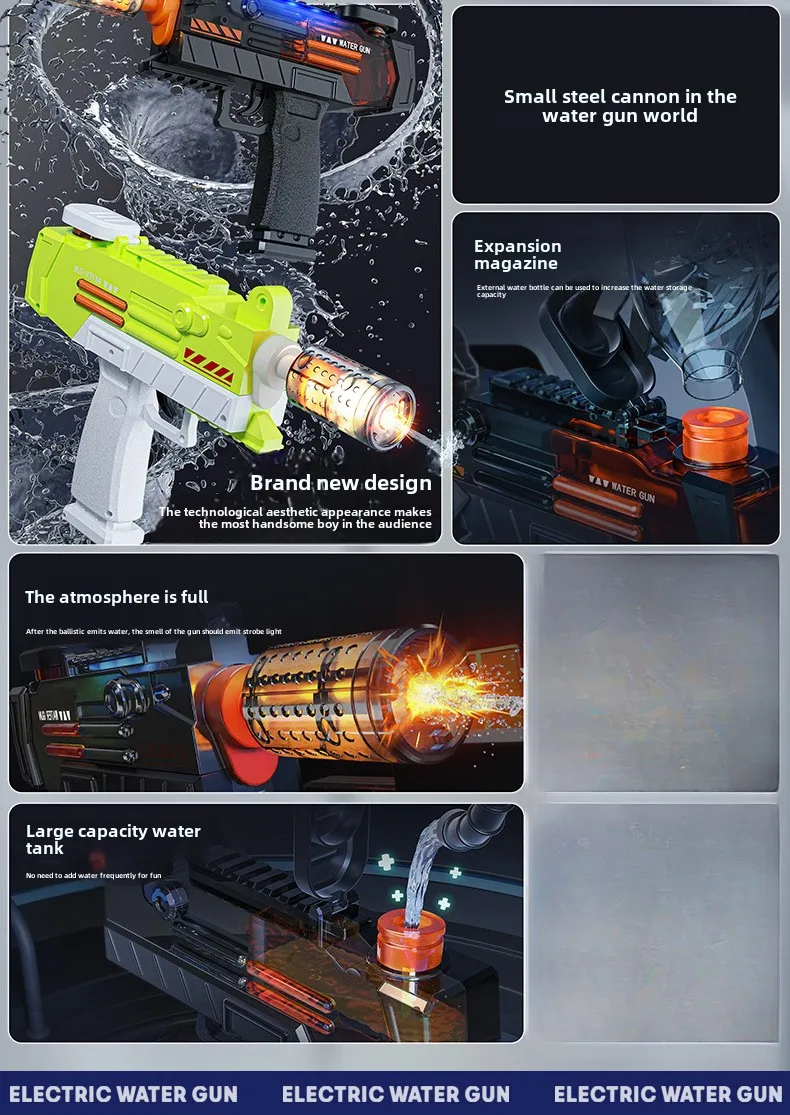 Seguro para niños: las pistolas de agua están hechas de materiales ABS de alta calidad, no tóxicos y cumplen con los estándares de calidad de juguetes de EE. UU.Las bebidas de agua cuentan con un mango antideslizante y compacto.