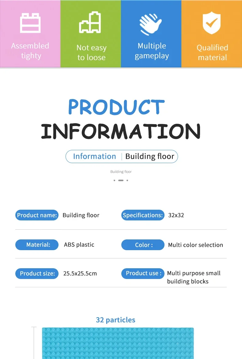 Placa Base de bloque de 3 uds., 32x32 de 16x32 puntos, Base de plástico, placas de 10 pulgadas, Compatible con MOC, ladrillos de construcción, juguetes clásicos multicolores