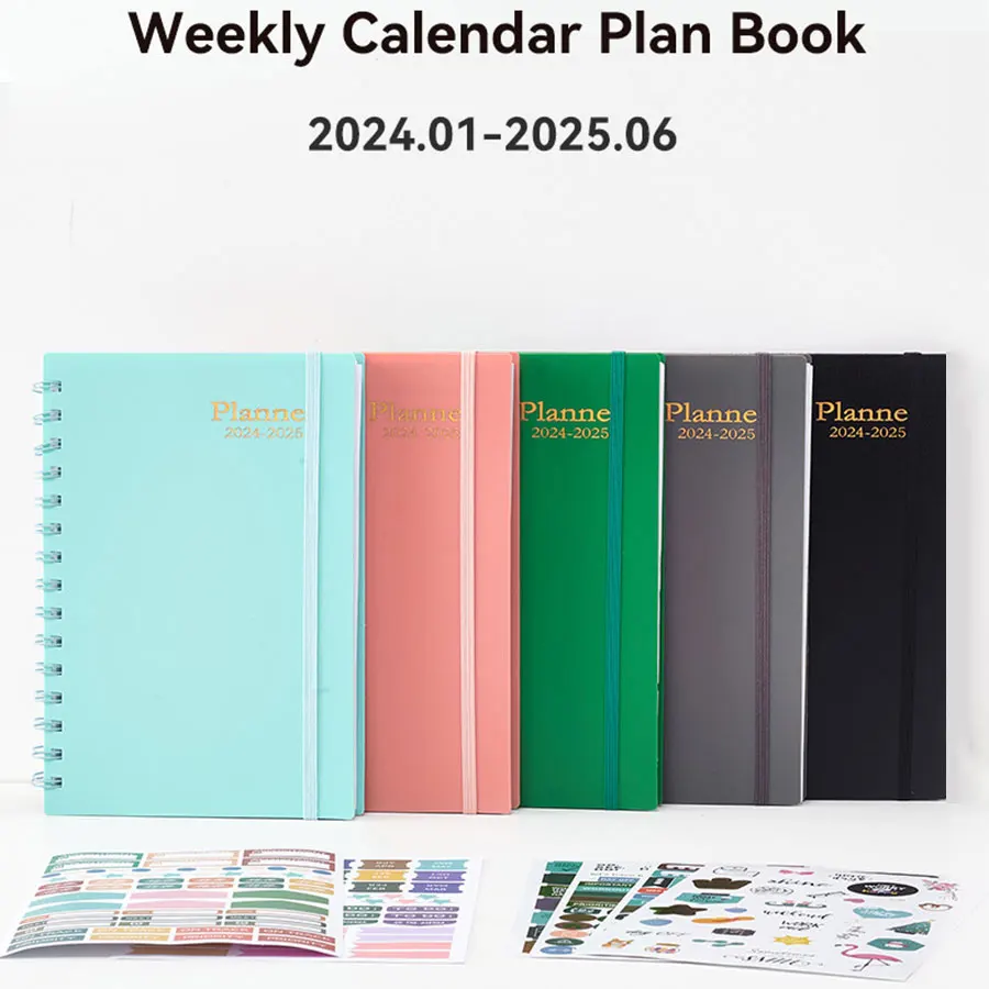 Comprar Planificador 2024, horario completo en inglés, cubierta de PP, 18 meses (2024.01-2025.06), cuaderno de bobina de vuelco, papelería, suministros escolares y de oficina