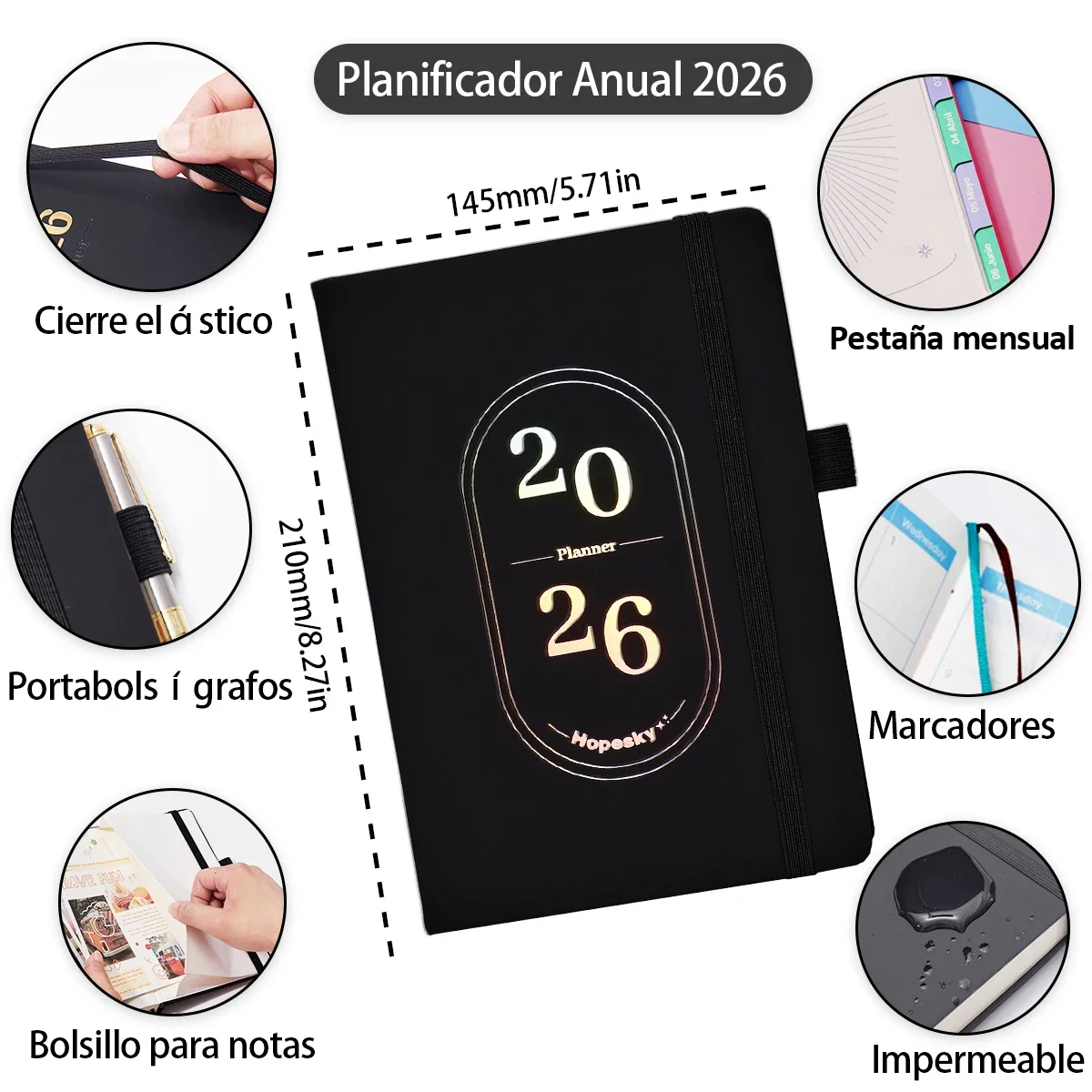 Calendarios completos 2026-2027, descripción general anual, diseños mensuales, semanales y diarios, ¡incluso páginas de revisión mensuales para ayudarlo a reflejar y levantar el nivel!