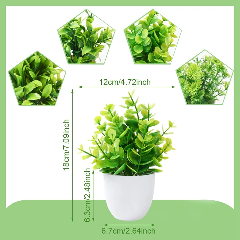 Planta falsa verde Artificial, flor de eucalipto, planta en maceta para interior, exterior, hogar, dormitorio, jardín, decoración, suministros para fiestas, 4 Uds.