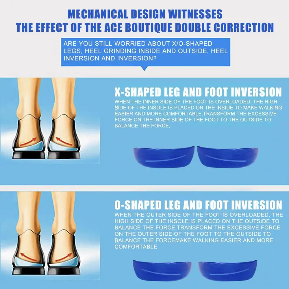 2. Solución conveniente: corrija la postura de sus piernas sin ningún equipo adicional incorporando sin esfuerzo plantillas de corrección de piernas O/X en sus zapatos diarios.Estas plantillas modifican la forma de tu pie y alivian la presión en áreas específicas, garantizando facilidad y comodidad.