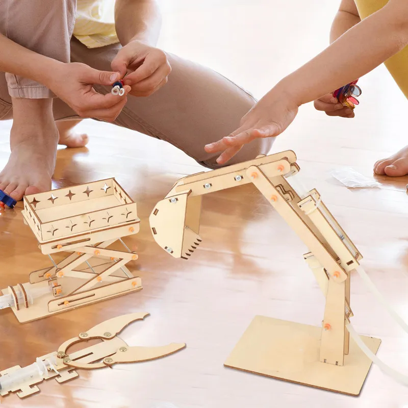 DIY Scientific Experiment Platform Excavator Puzzle Toy Hydraulic Arm Engineering Mechanical Physics Kids Educational Gift