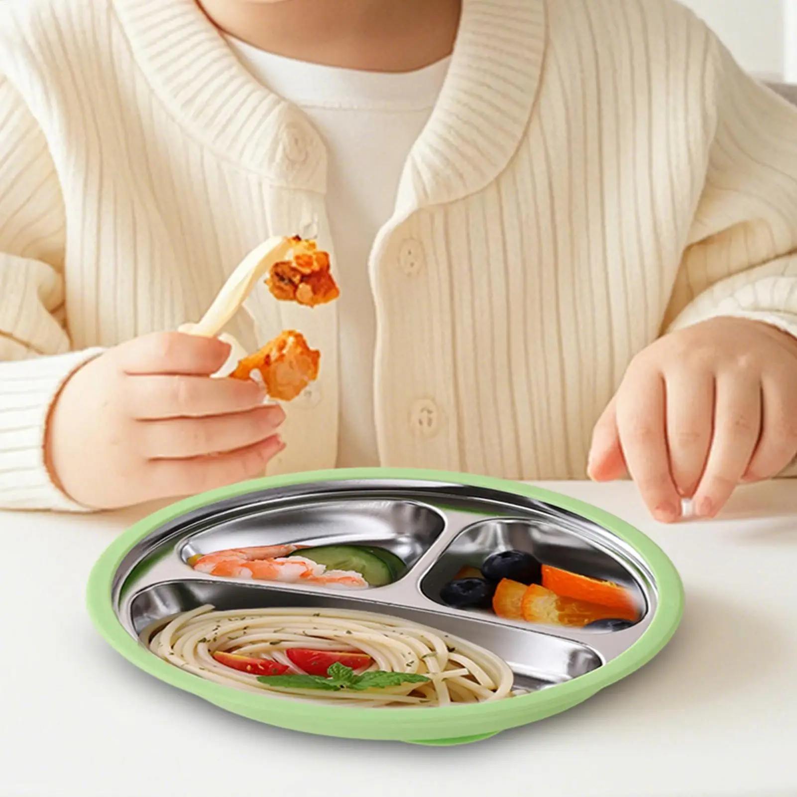 Diseñadas con características resistentes a caídas, estas placas de succión para bebés de acero inoxidable son perfectas para alimentar a los niños de forma segura.Desde cocinas domésticas hasta aventuras al aire libre como acampar o hacer picnics, las bandejas sujetan la comida de forma segura.Perfectos para refrigerios o cenas, brindan cómodas experiencias gastronómicas durante el cuidado del jardín de infantes o salidas familiares.