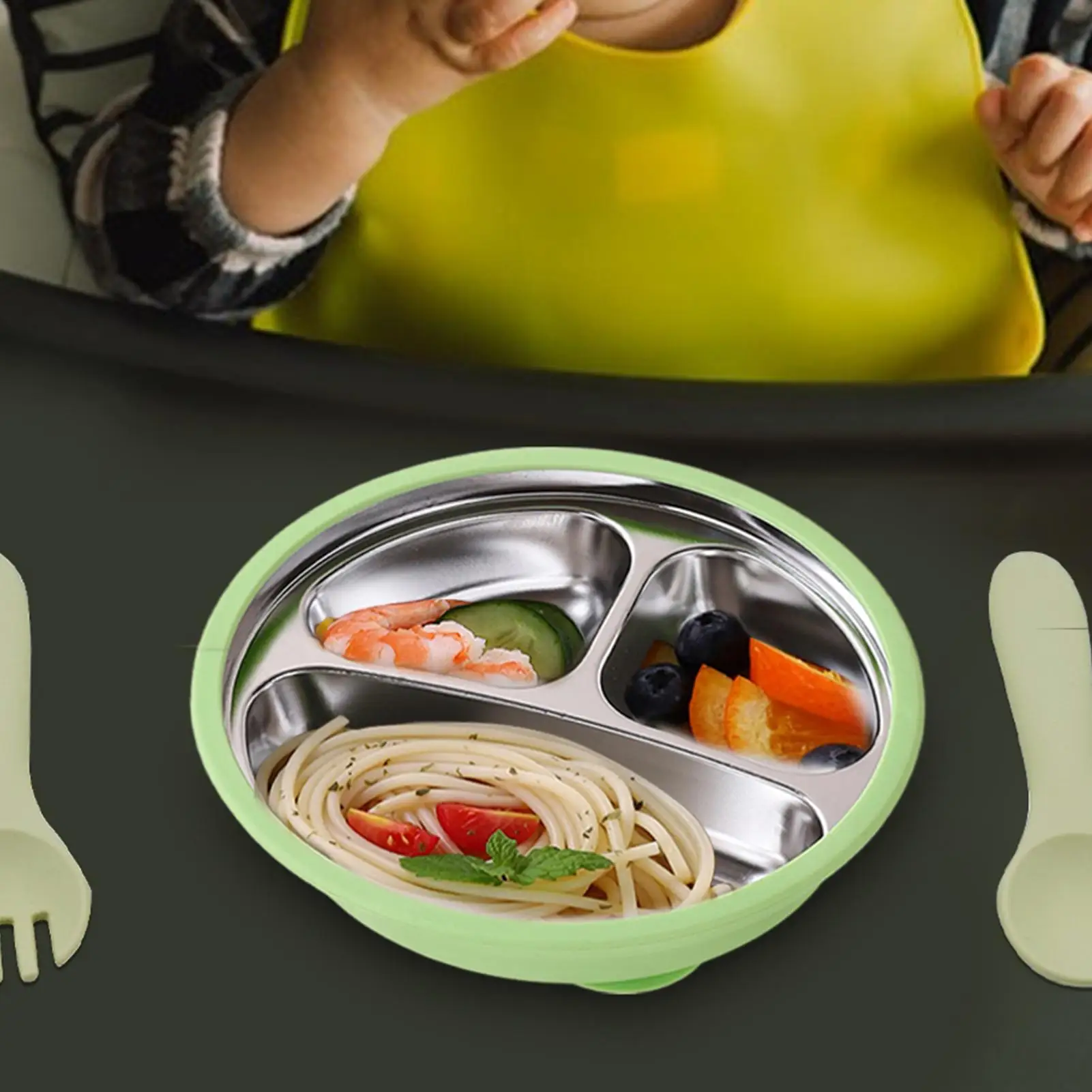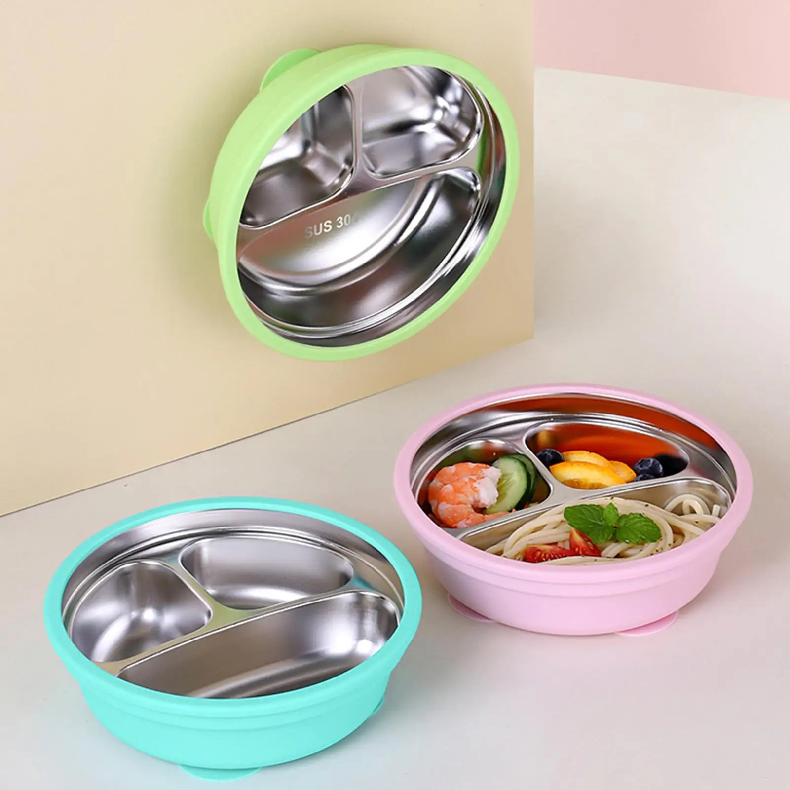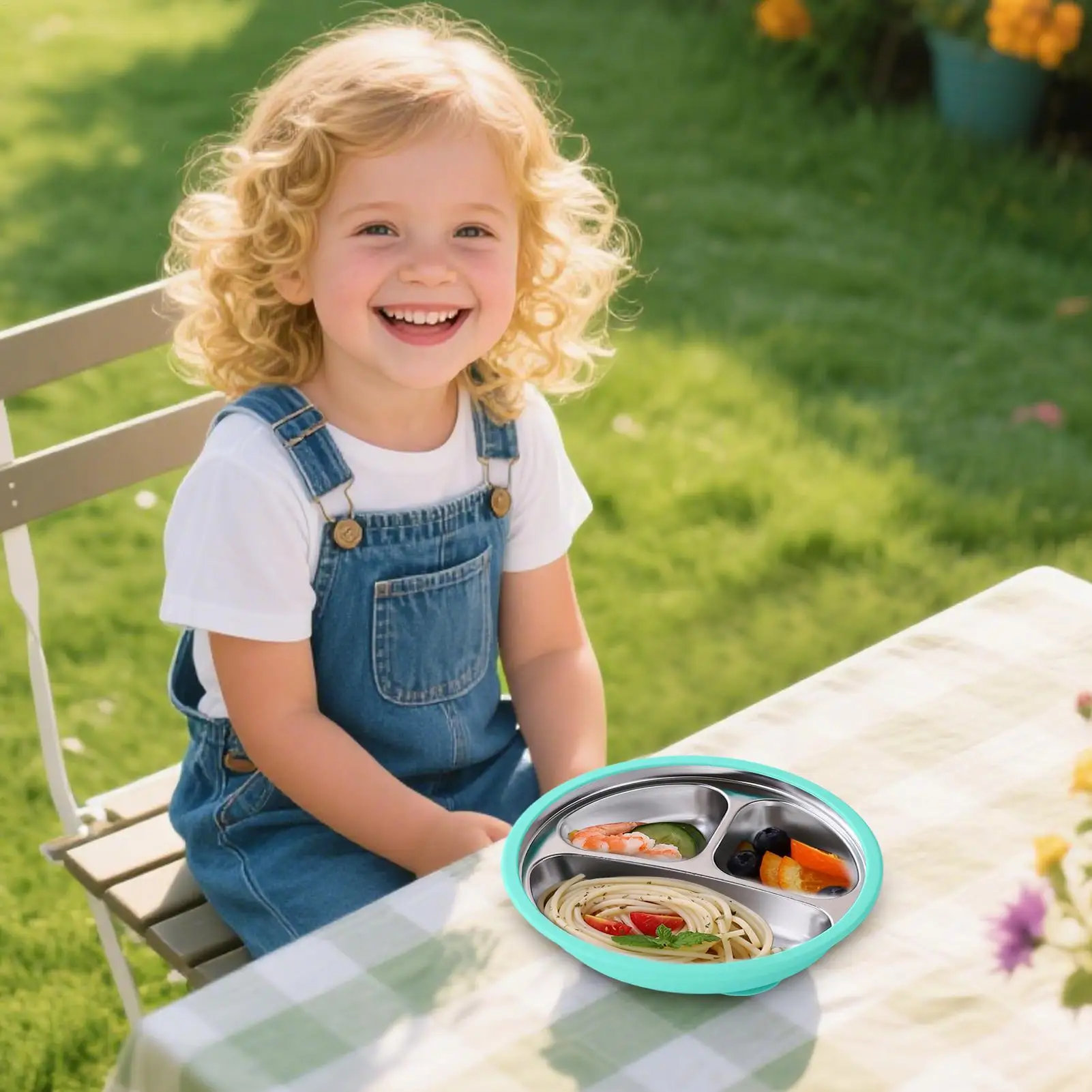 Diseñadas con características resistentes a caídas, estas placas de succión para bebés de acero inoxidable son perfectas para alimentar a los niños de forma segura.Desde cocinas domésticas hasta aventuras al aire libre como acampar o hacer picnics, las bandejas sujetan la comida de forma segura.Perfectos para refrigerios o cenas, brindan cómodas experiencias gastronómicas durante el cuidado del jardín de infantes o salidas familiares.