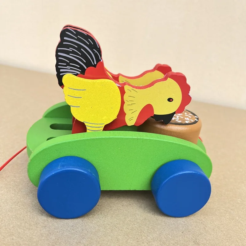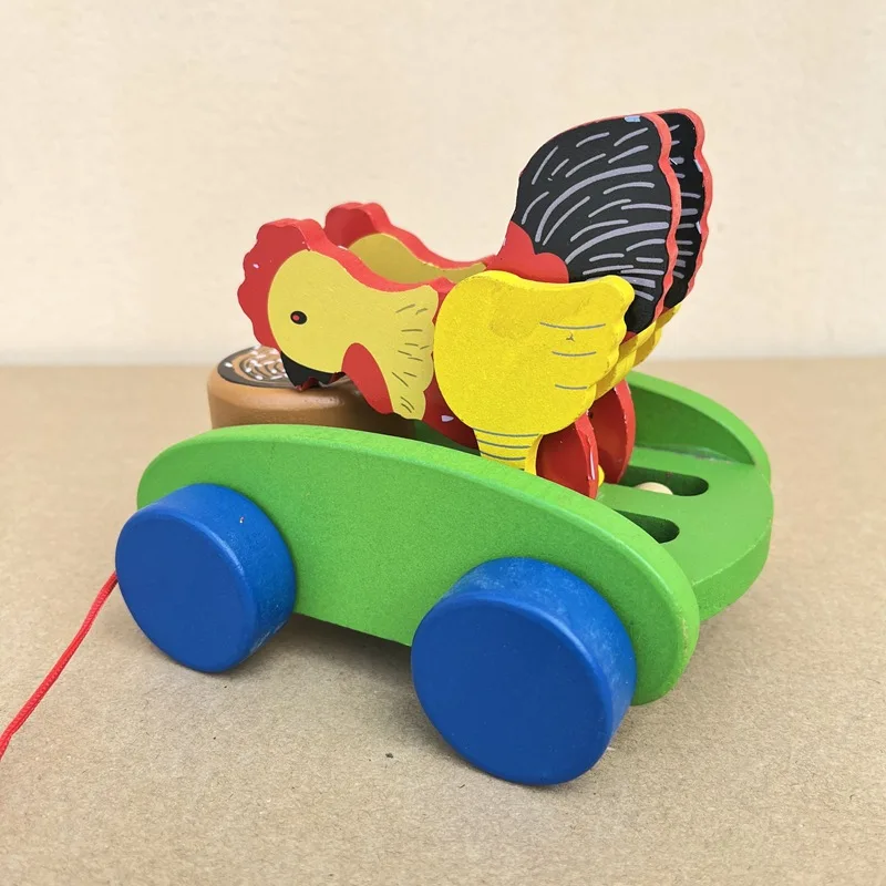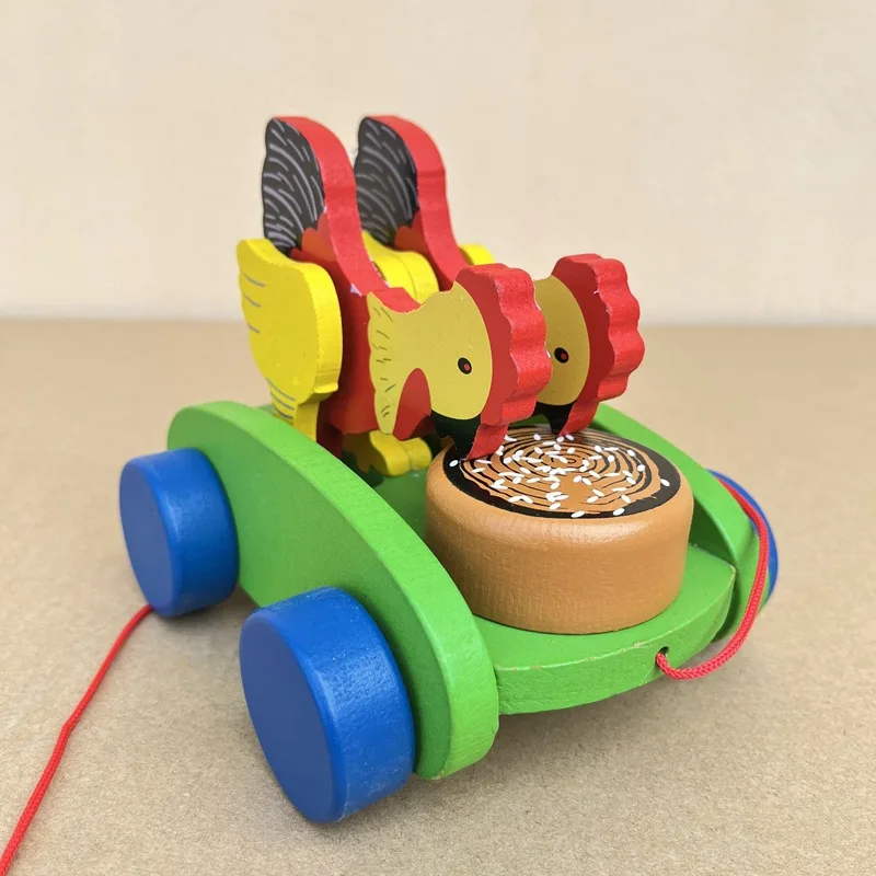Polluelos de madera Pecking At Mira carritos de juguete pollos comiendo arroz tambores aprendiendo a caminar carritos educativos para niños carritos de animales