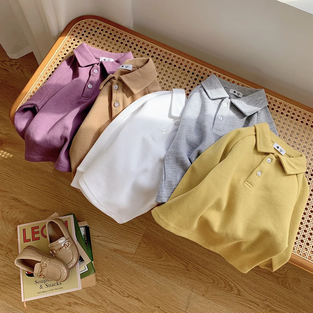 Comprar POLO para niños y niñas, camiseta de Color sólido con cuello de Polo a la moda, Top informal para bebés