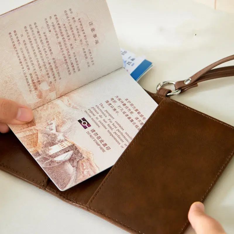 Comprar Porta pasaporte de cuero PU portátil y ligero, cuerda colgante, bolsa de almacenamiento para certificados de letras, tarjetero, registro de avión, 1 ud.