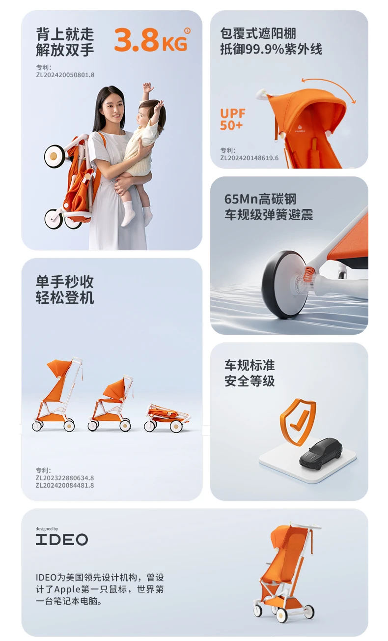 Portabebés aprobado por avión de 3,8 KG, mochila para cochecito, portátil, diseño de seguridad plegable con una sola mano, cochecito ligero de alto tráfico