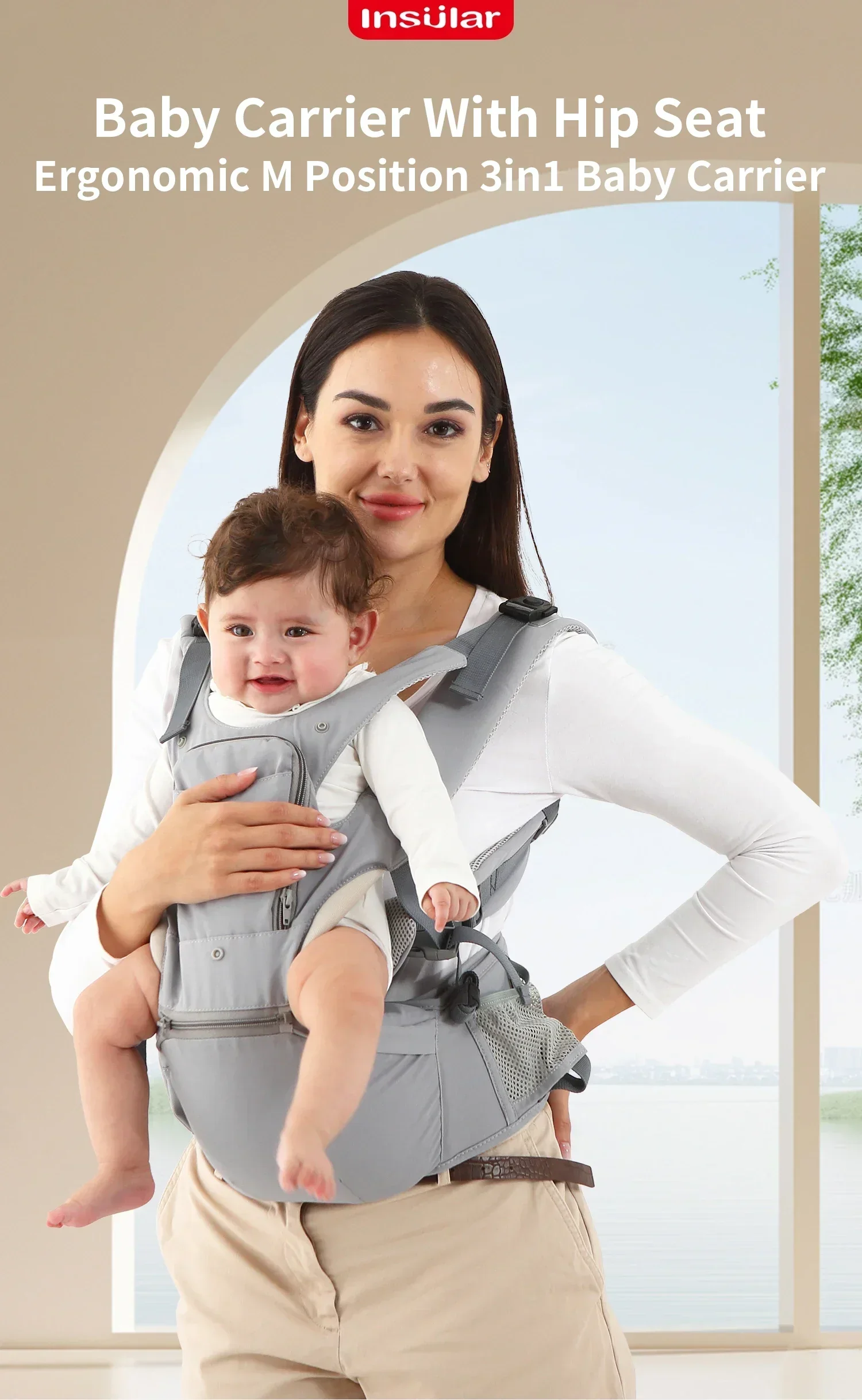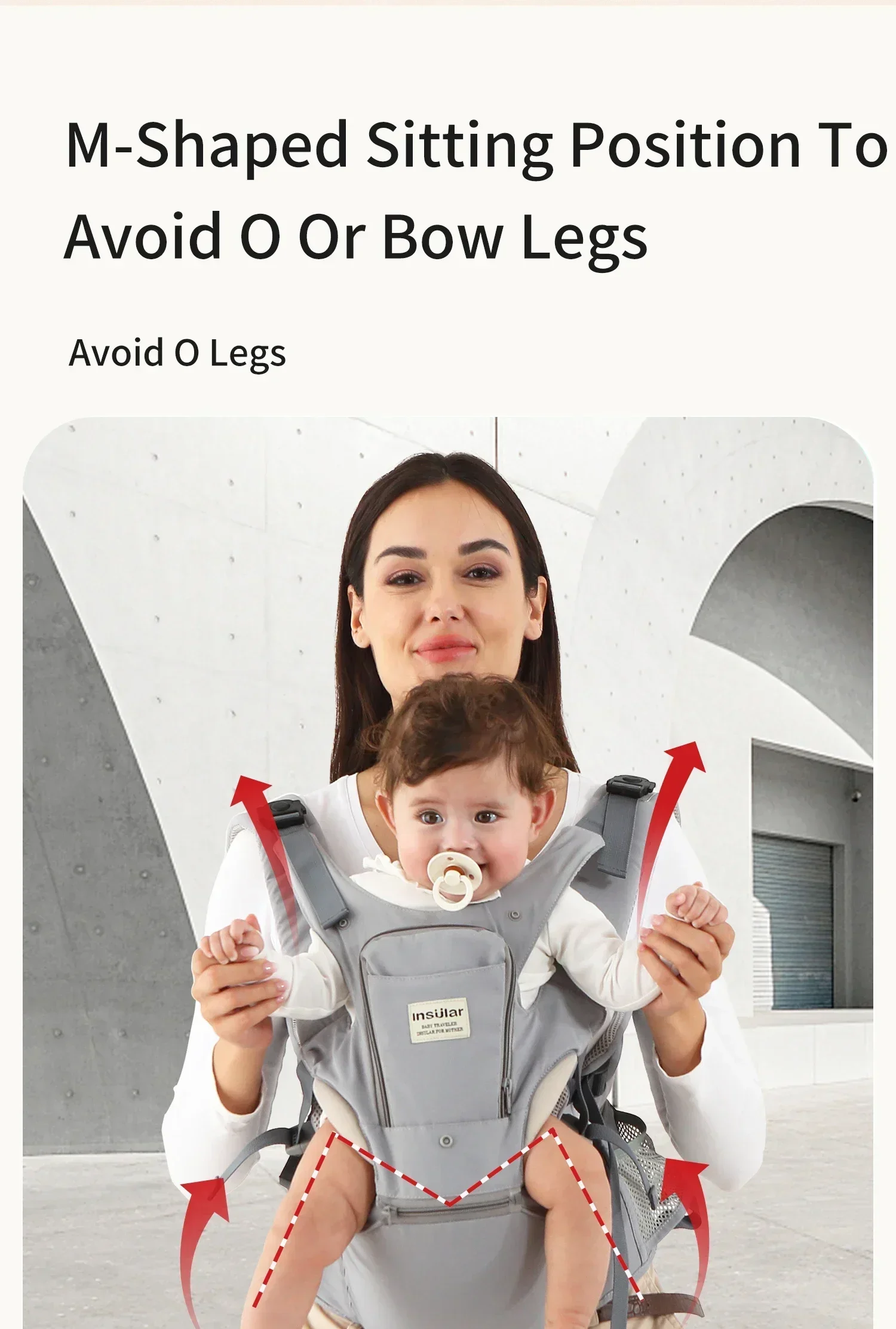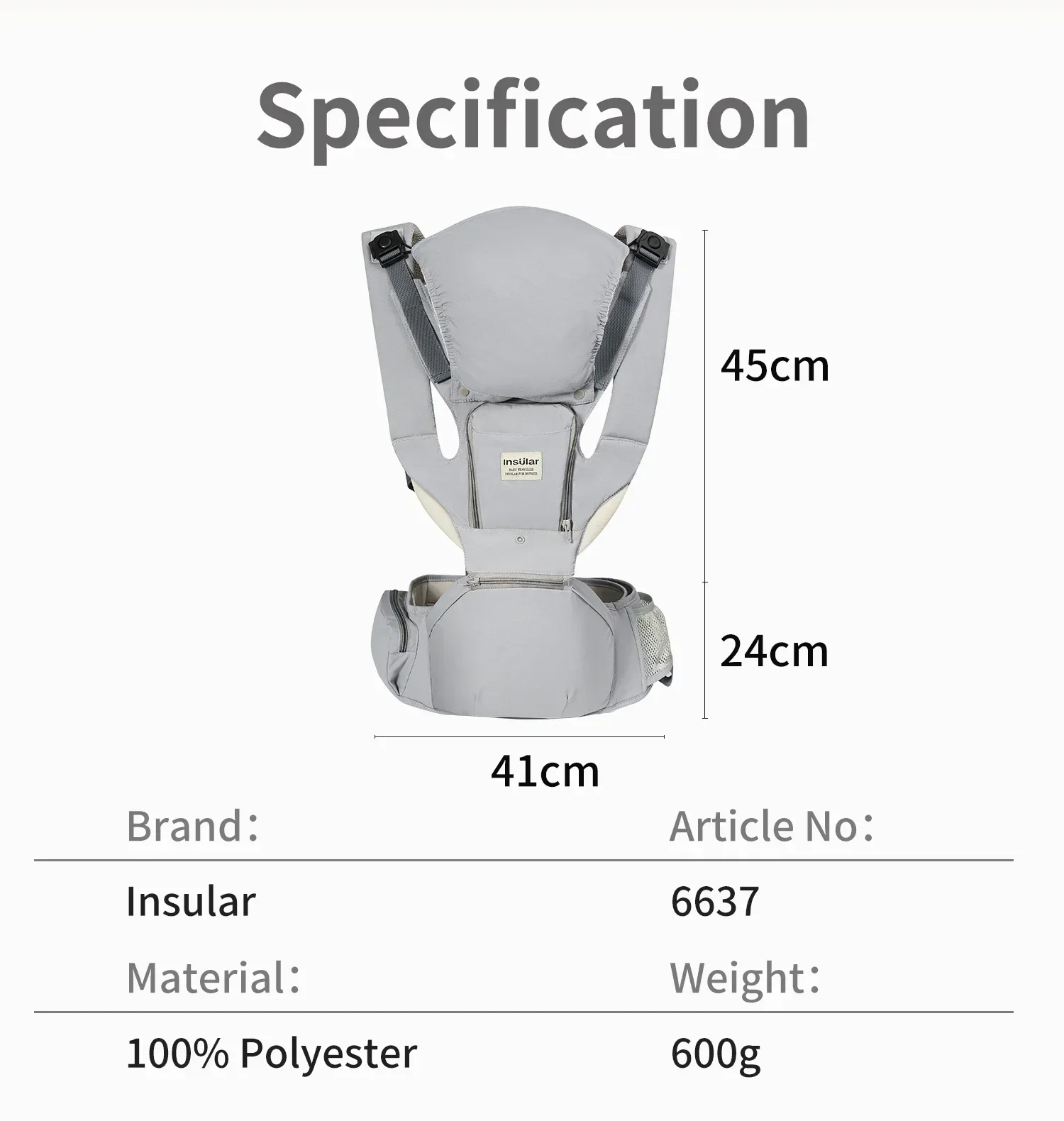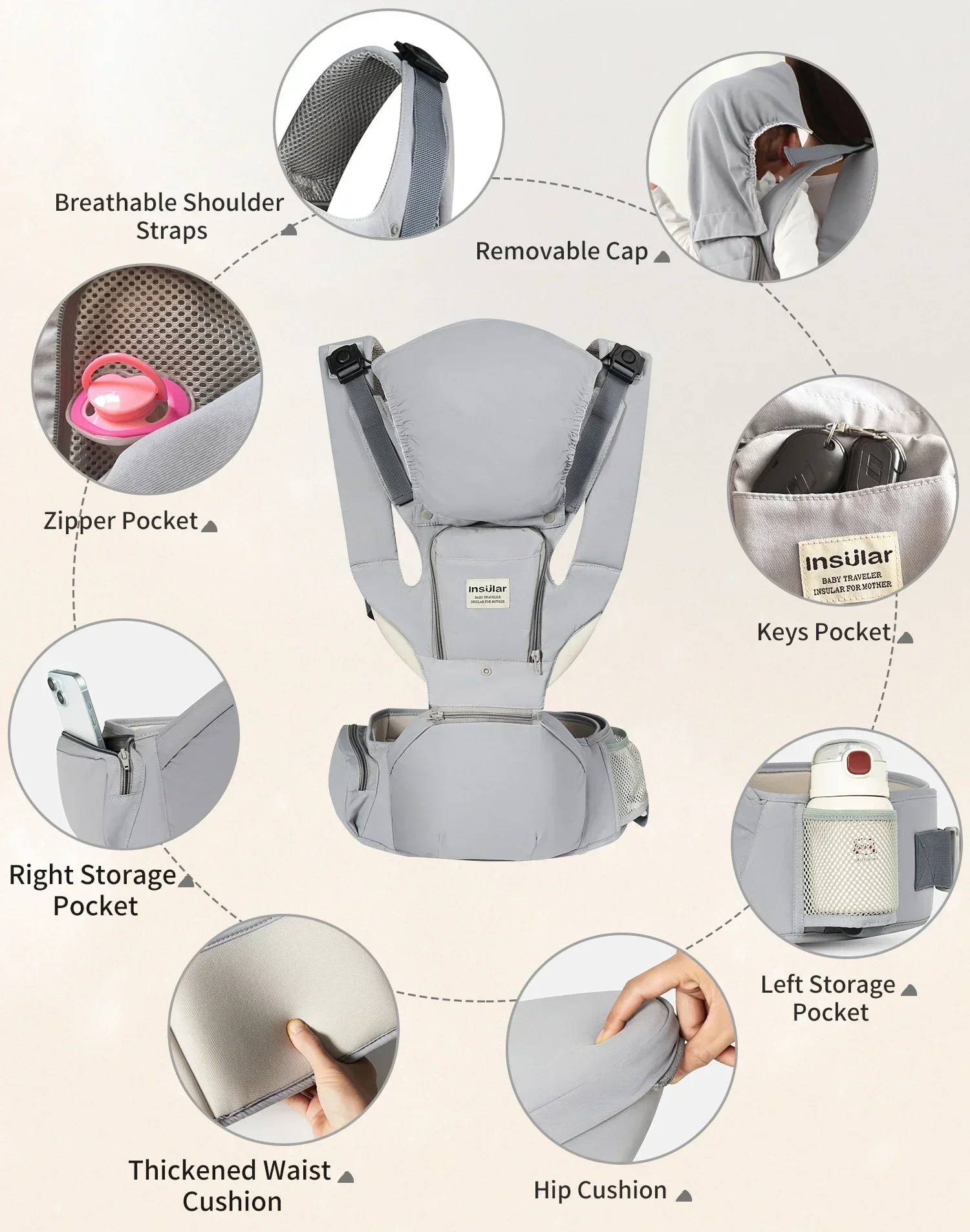 Portabebés INSULAR 3 en 1, taburete multifuncional para cintura infantil, taburete de cintura transpirable con asiento de cadera, sujeción frontal portátil para 4 estaciones