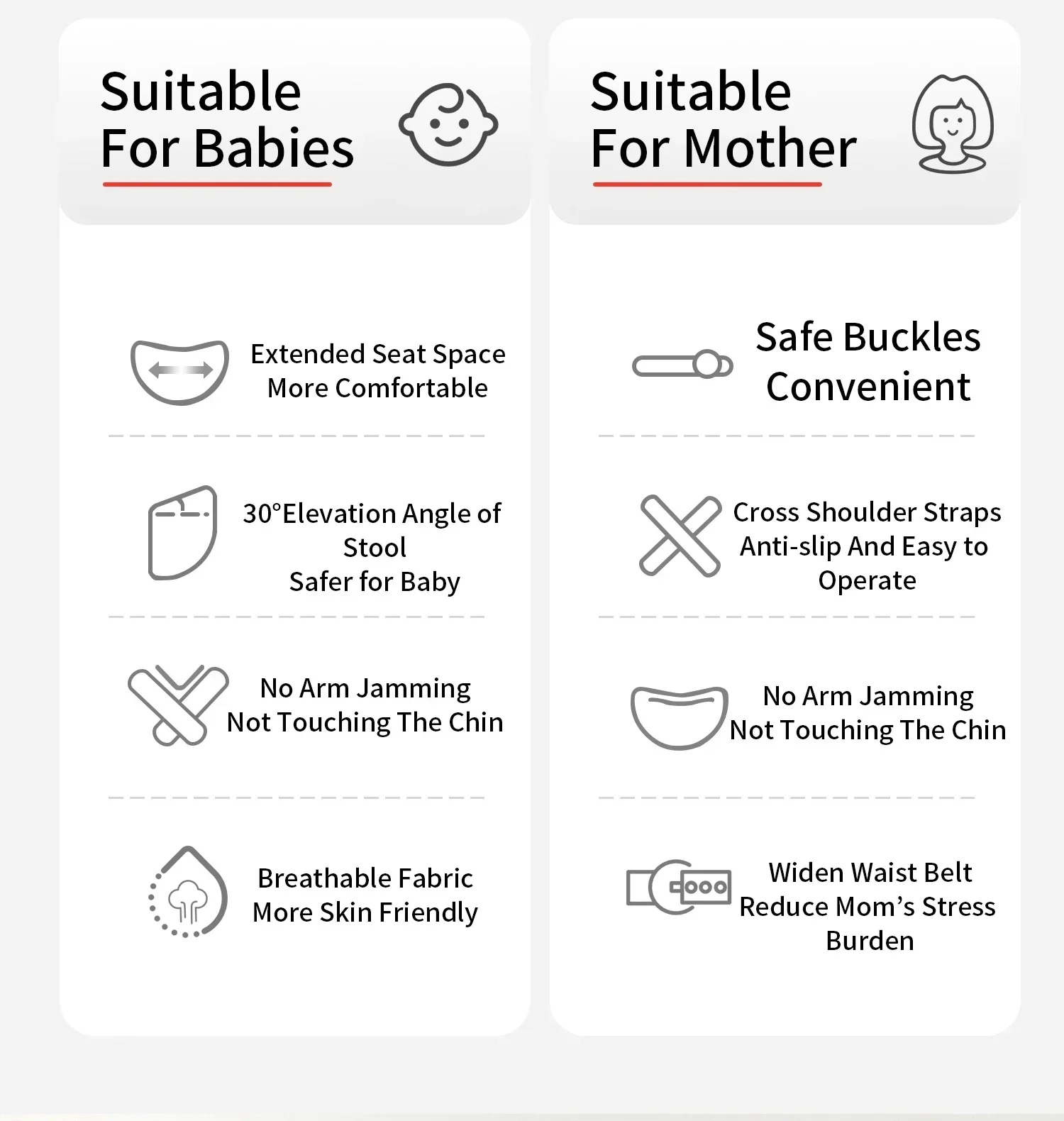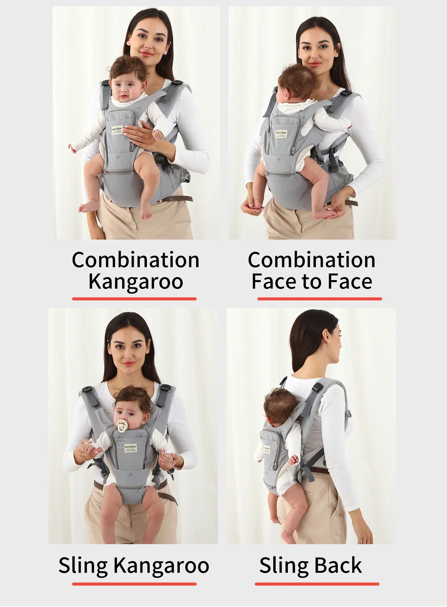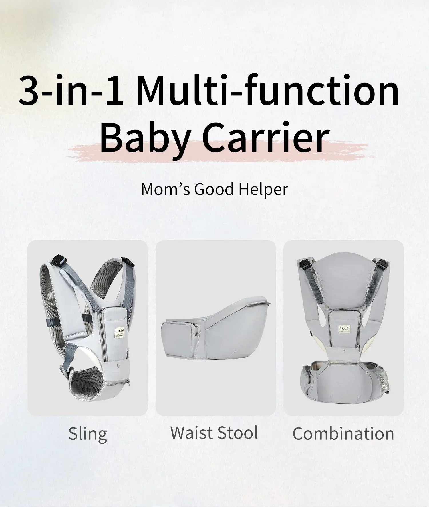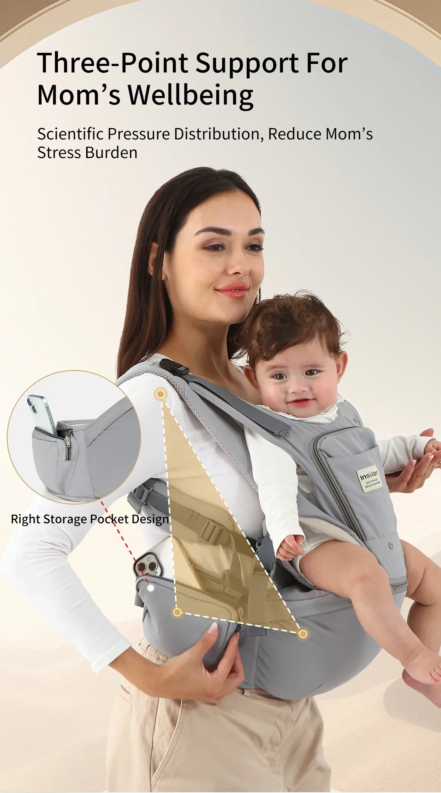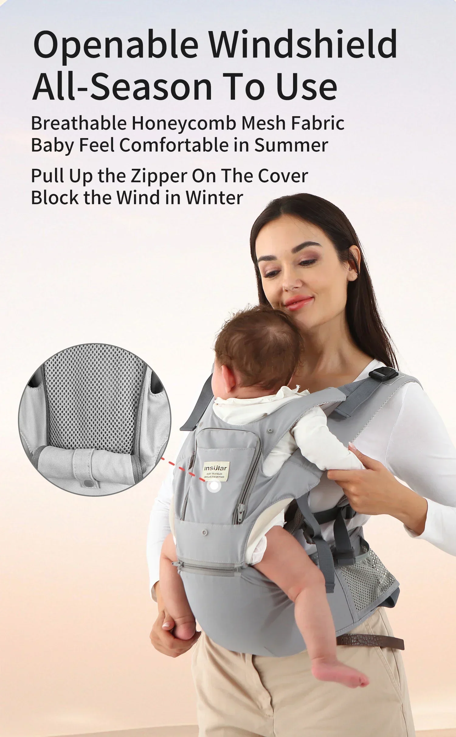Portabebés INSULAR 3 en 1, taburete multifuncional para cintura infantil, taburete de cintura transpirable con asiento de cadera, sujeción frontal portátil para 4 estaciones