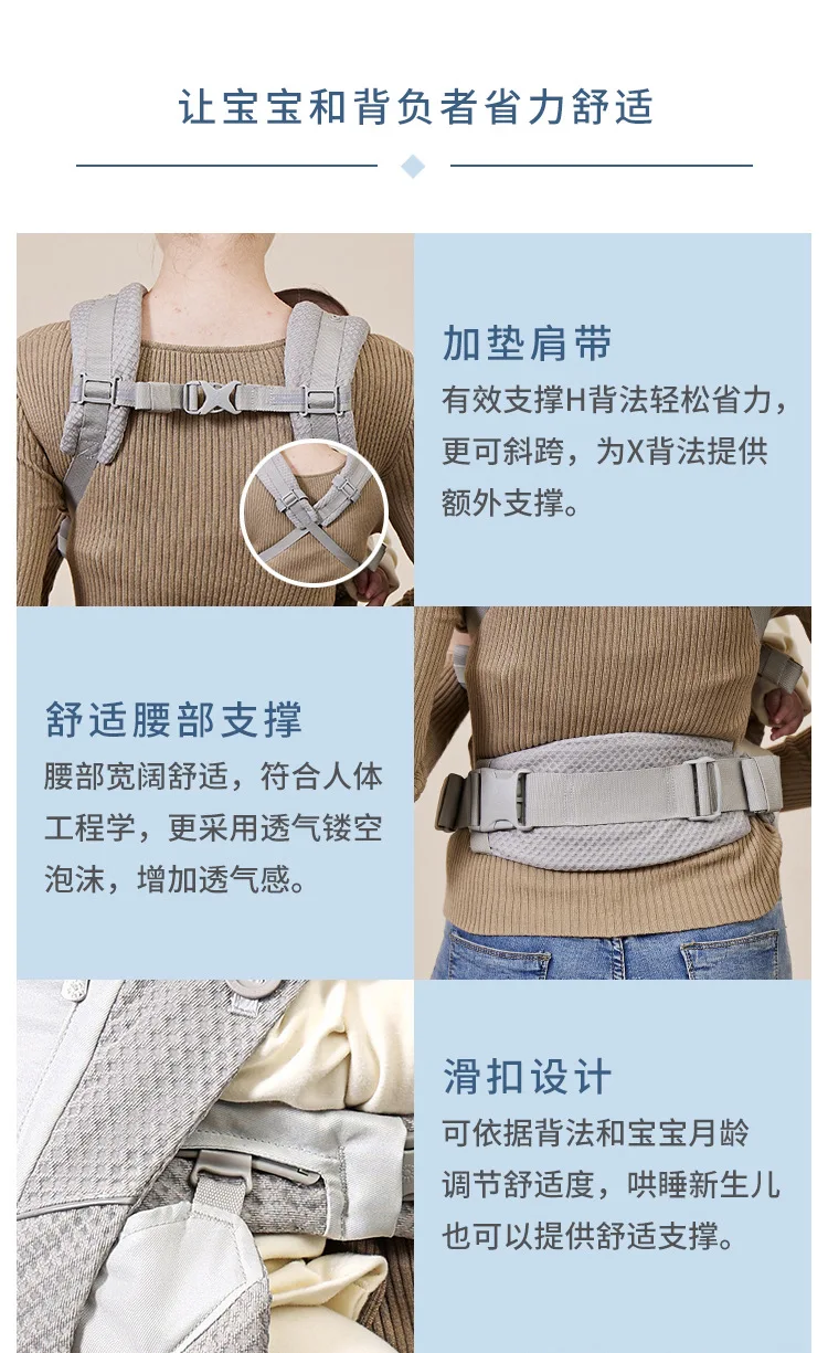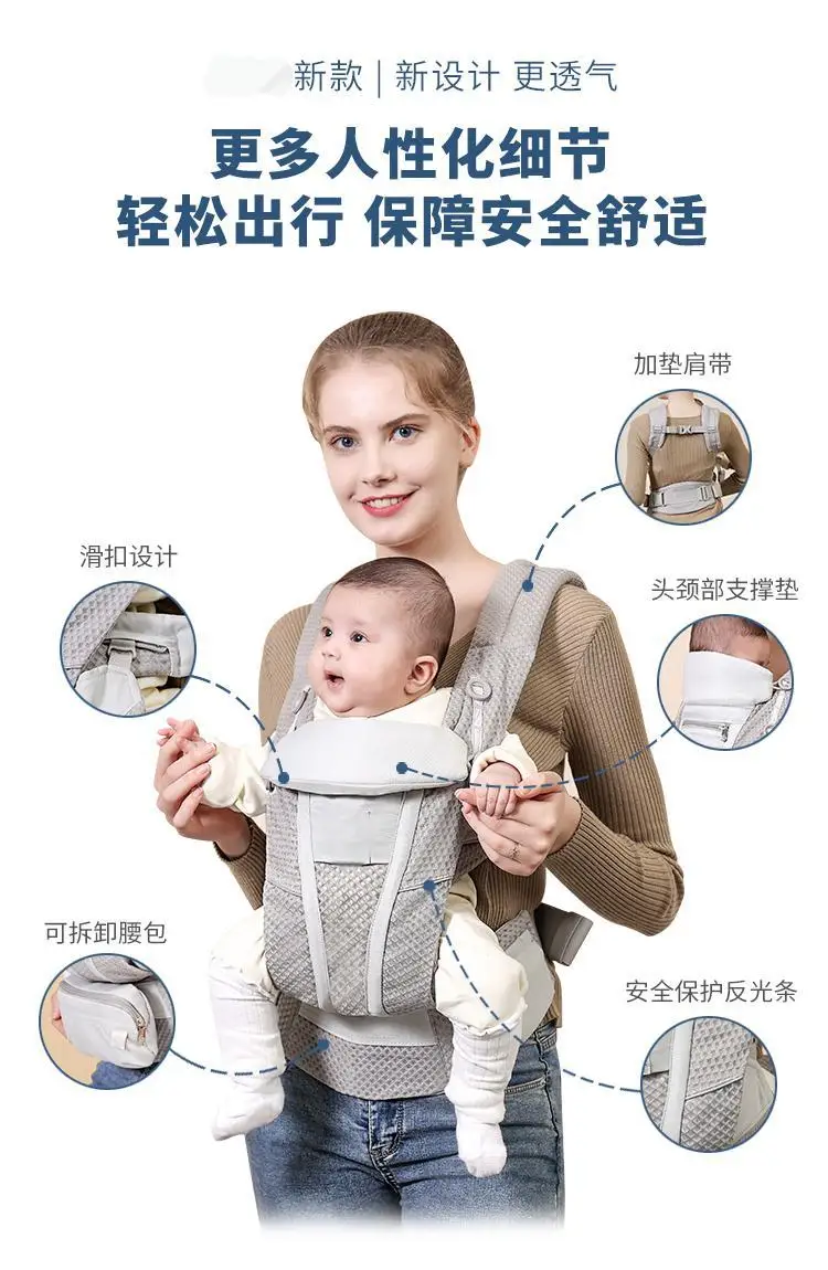 Portabebés, taburete de cintura fácil de salir, frente y espalda, abrazo Horizontal de doble uso, ligero, multifuncional para bebé recién nacido
