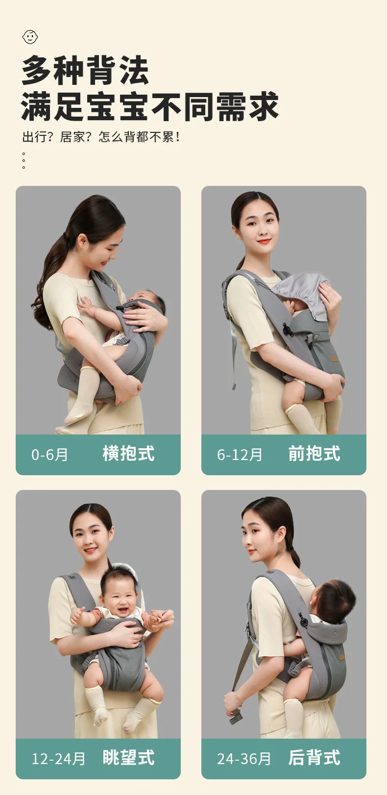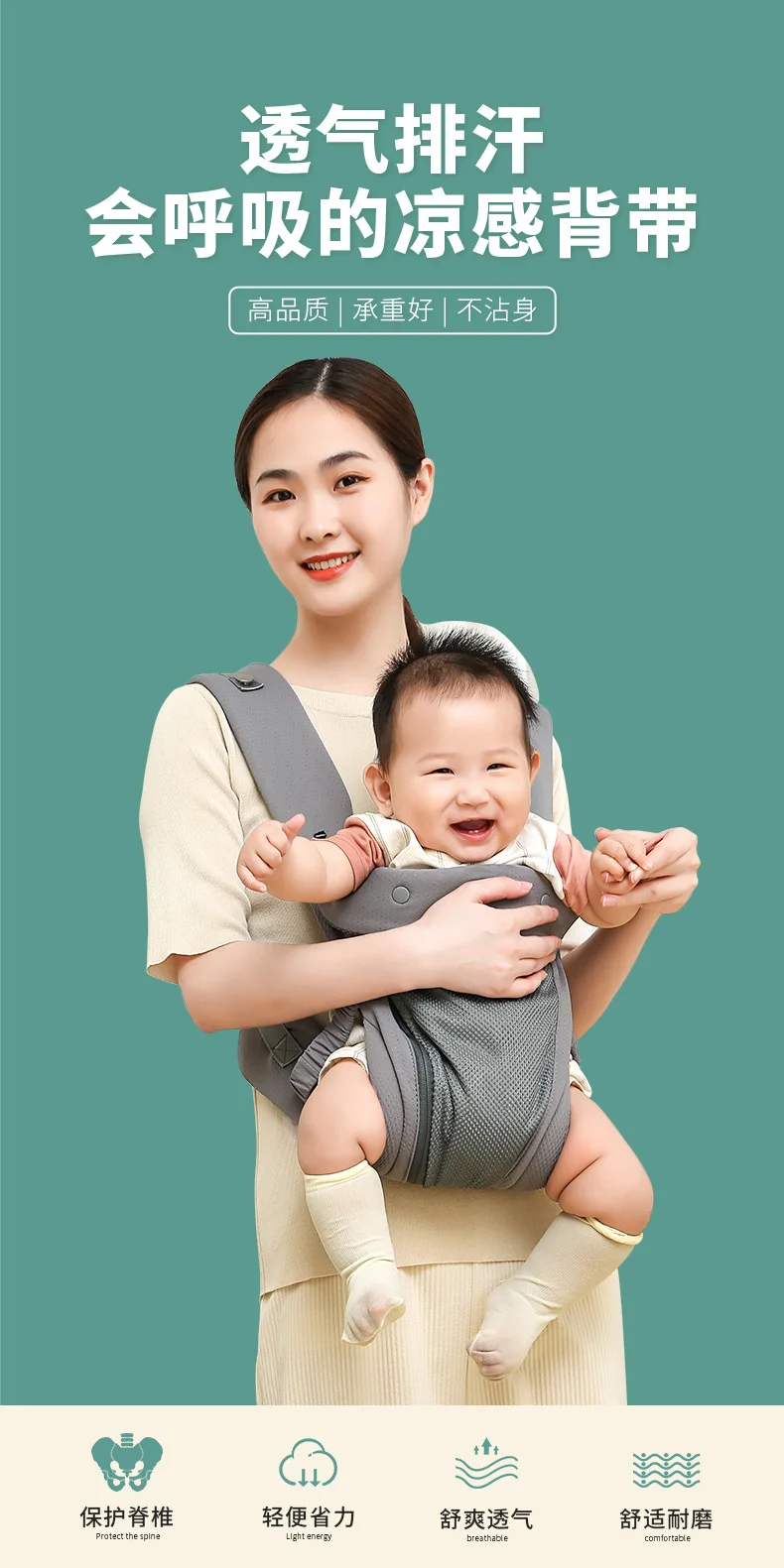 Portabebés tipo de transporte frontal, ligero de doble propósito, adecuado para recién nacidos, dispositivo de transporte para bebés