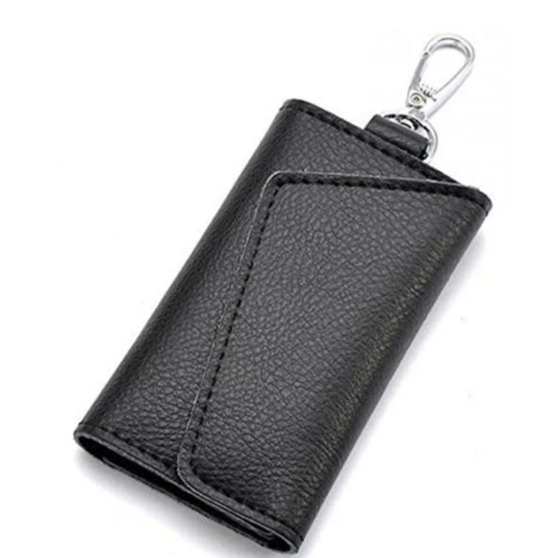 Comprar Portallaves Simple a la moda, Cartera de cuero genuino, cartera para llaves sólida Unisex, bolsa organizadora, cartera para ama de llaves de coche, tarjetero