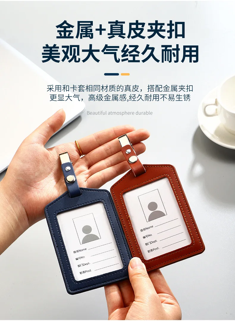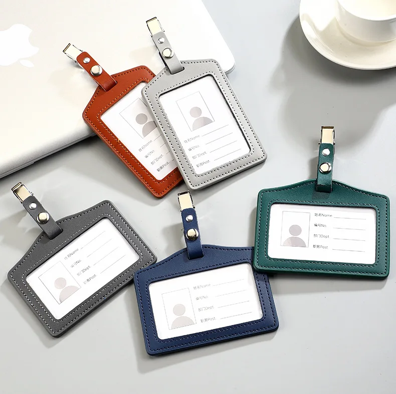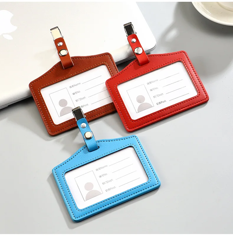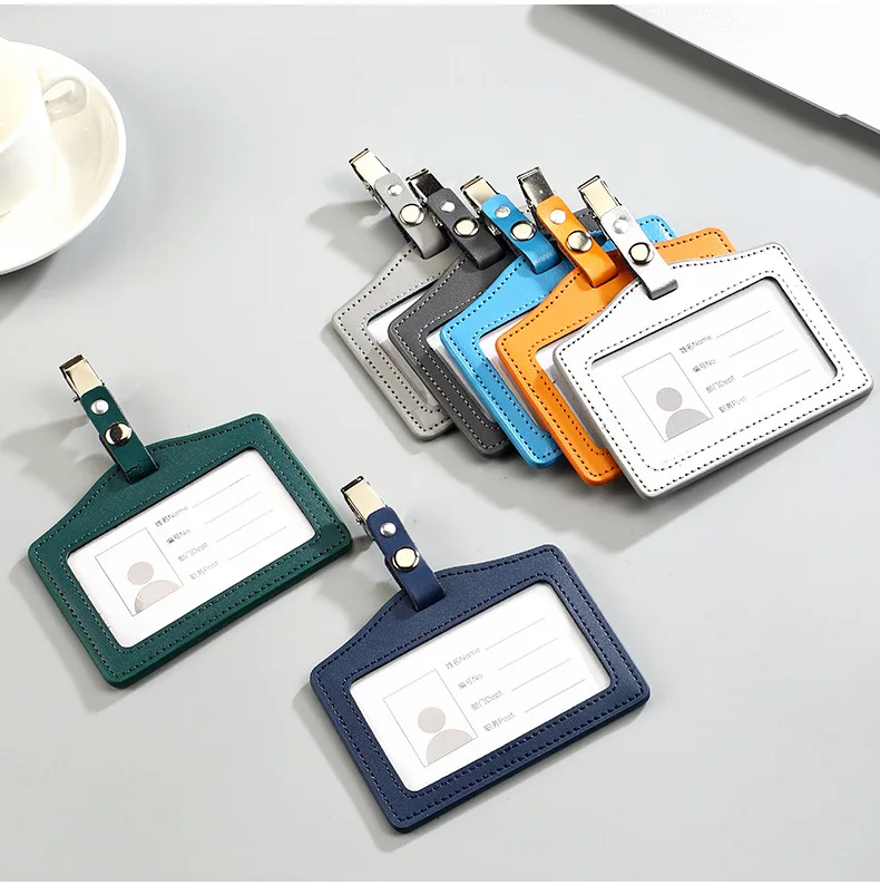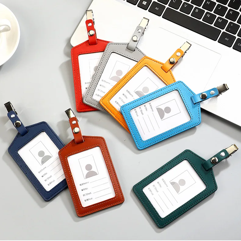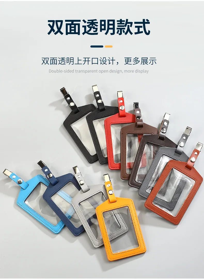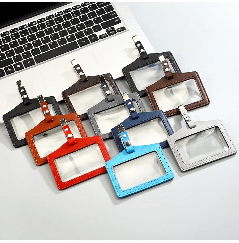 Portatarjetas de identificación de cuero PU, portatarjetas transparente con ranuras para tarjetas, Porta Credencial