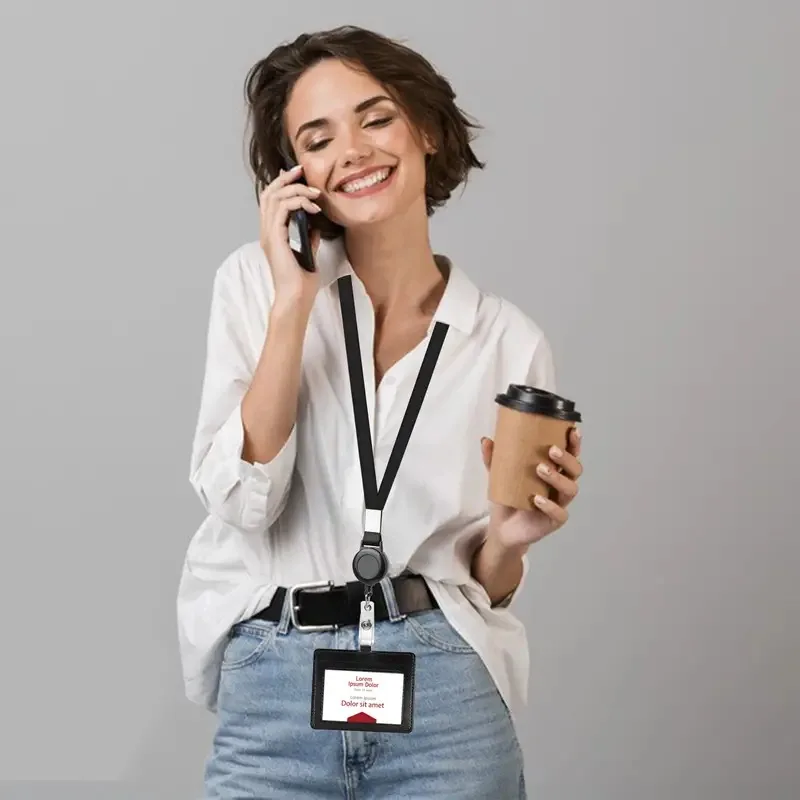 Portatarjetas de identificación Simple para trabajador, carrete de insignia retráctil de Color negro, cordón para personal, insignia de tarjeta de trabajo retráctil, suministros de oficina