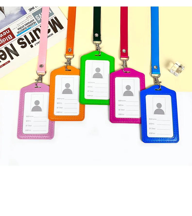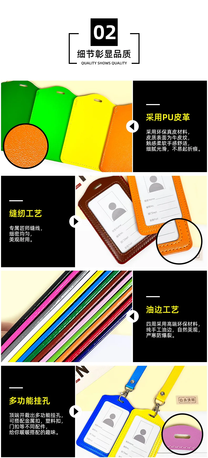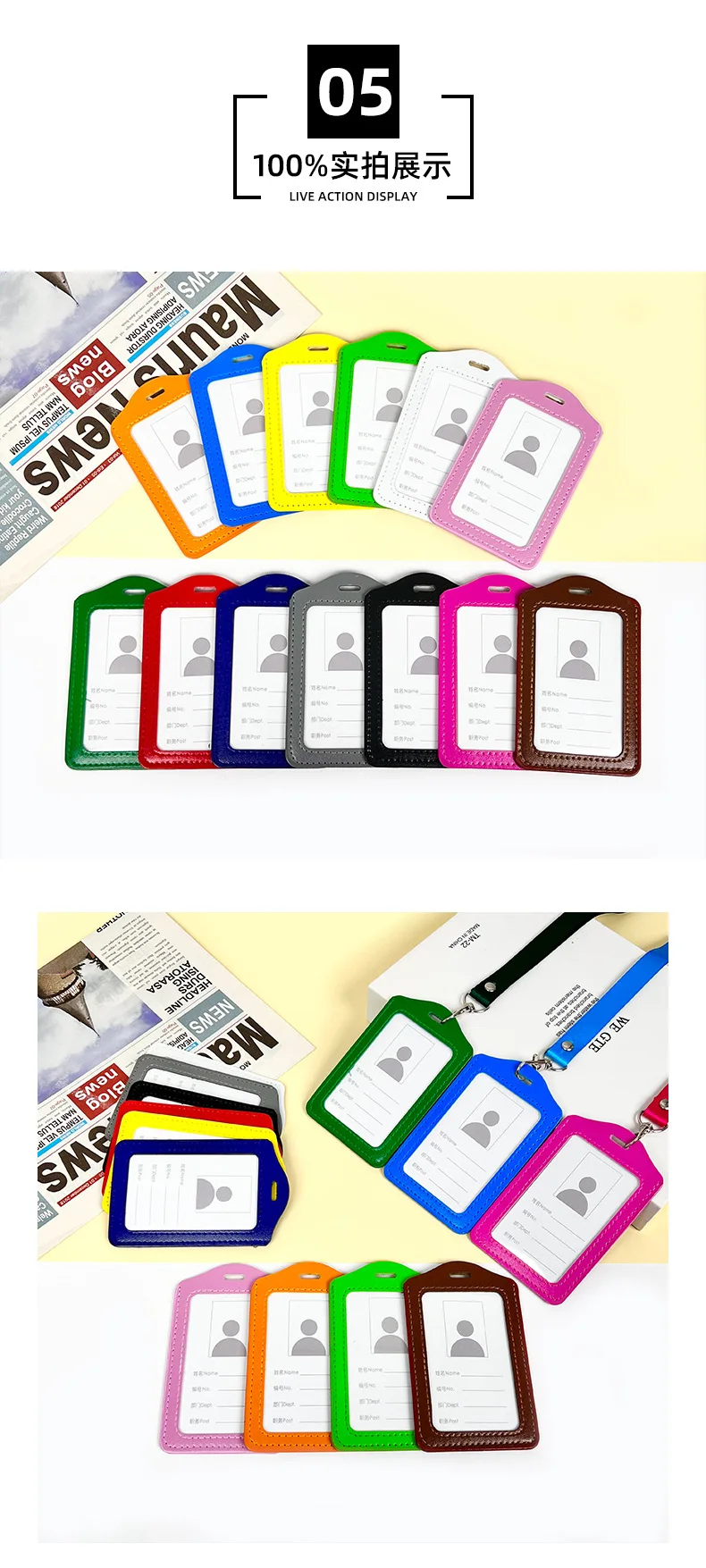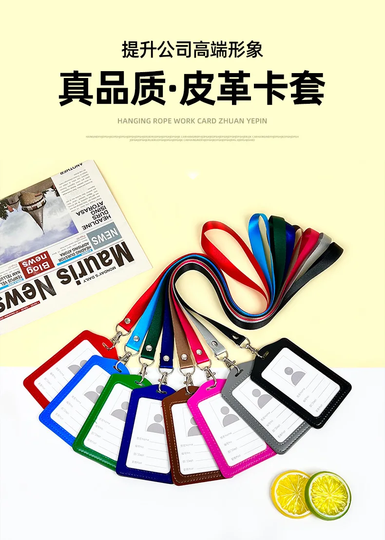 Portatarjetas de identificación de trabajo de cuero, cordón incluido, bolsa con etiqueta de nombre de cuero de vaca, estuche para tarjetas de visita de estilo minimalista Neutral