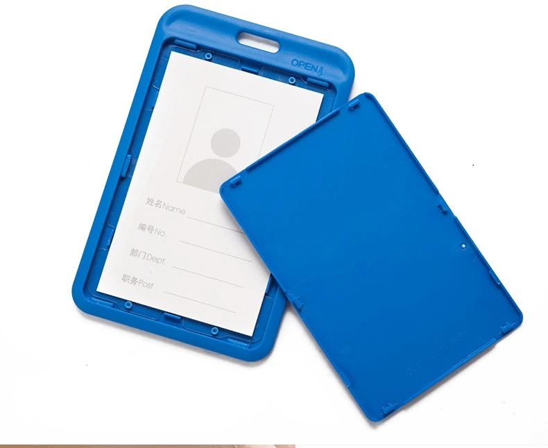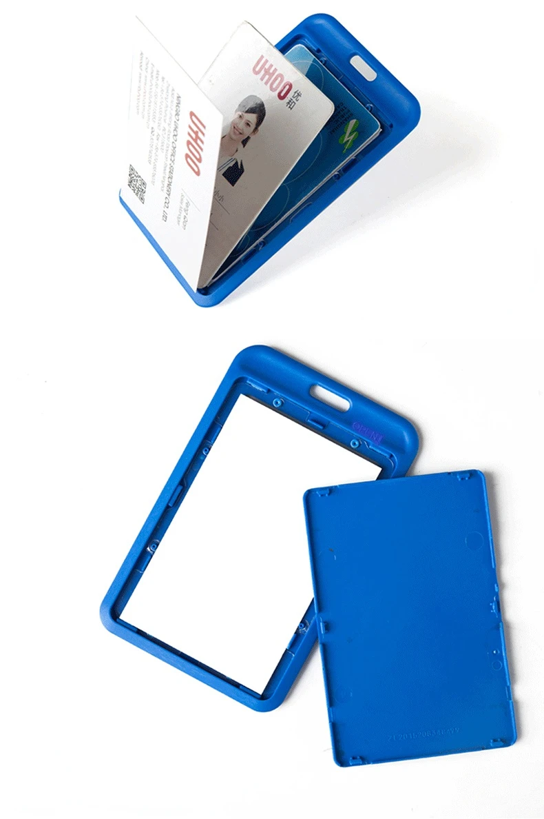 Portatarjetas de plástico duro de tamaño de tarjeta de crédito PP con ranura para lanzar etiqueta de personal de evento, soporte para tarjeta de identificación, correa de paso, 1 ud.