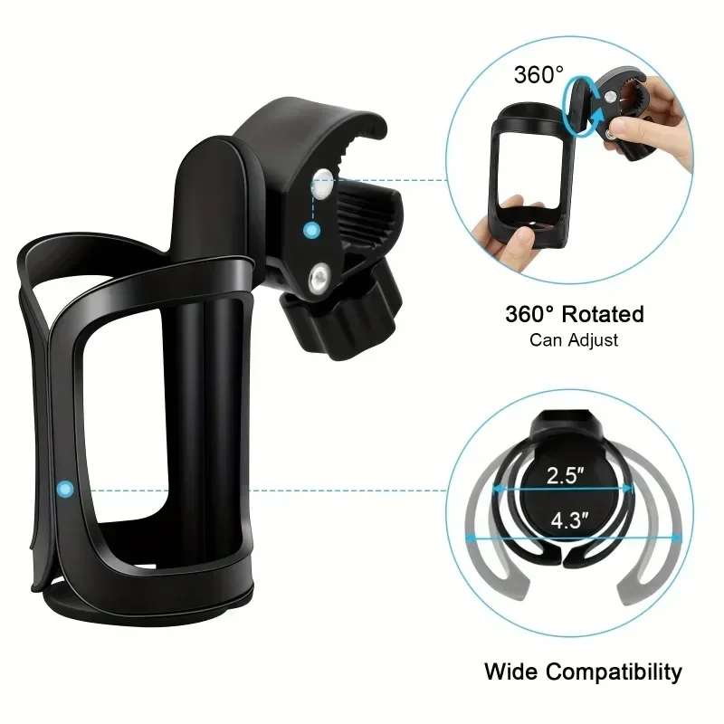 Rotación de 360 grados: el portavasos gira 360 grados.Se puede montar en el manillar, debajo del asiento, en el tubo inferior, en la horquilla delantera o en el tubo de dirección, y es compatible con la mayoría de los cochecitos.