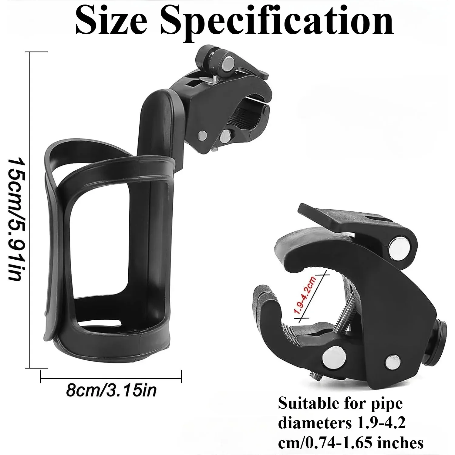 Dimensiones del producto: El portavasos mide 15 cm de alto y aproximadamente 8 cm de diámetro.Los brazos del portavasos se envuelven alrededor de su botella de agua o taza, brindándole un agarre seguro sin tener que preocuparse de que se caiga.