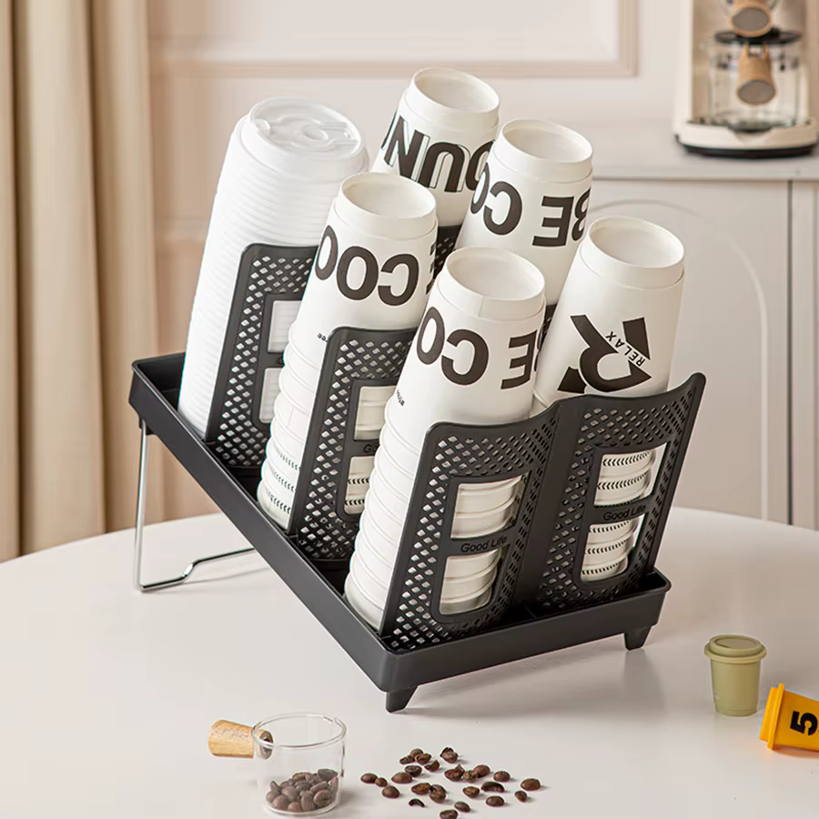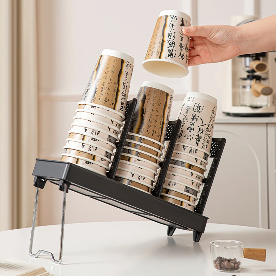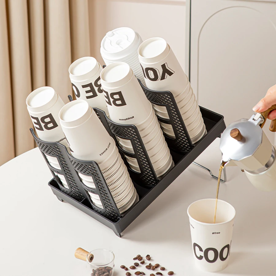 Comprar Portavasos de papel desechable multifuncional desmontable, estante de almacenamiento de tazas de café de tamaño individual y doble, montado en el suelo de plástico para el hogar
