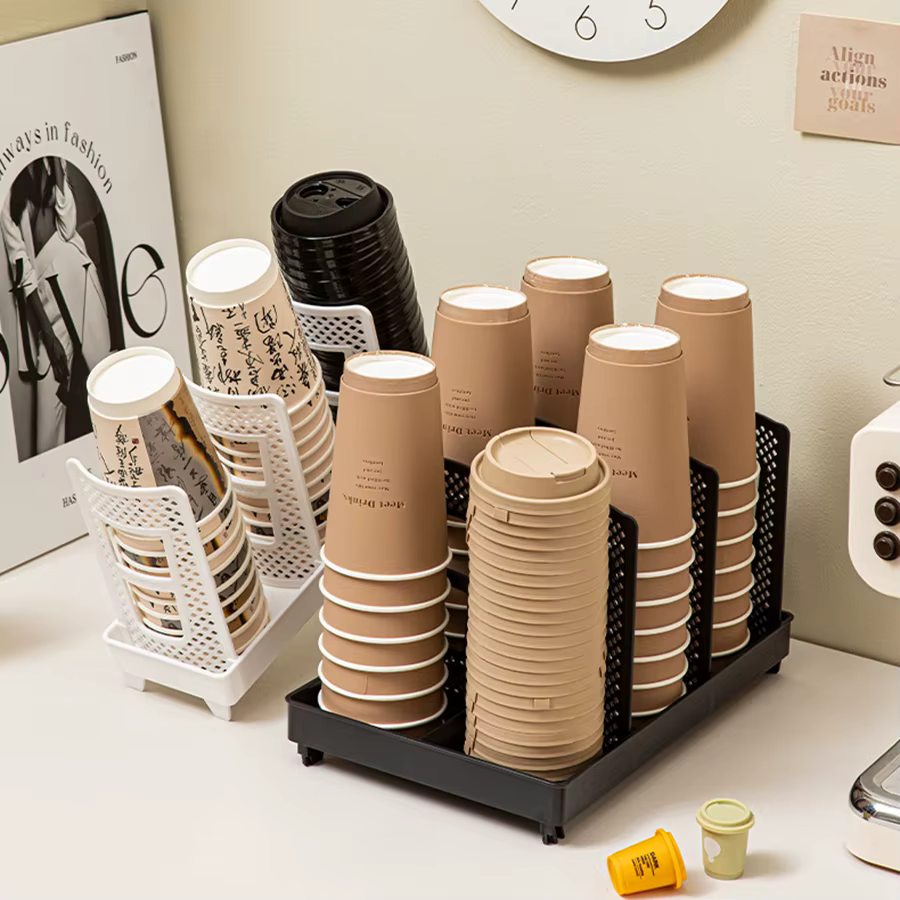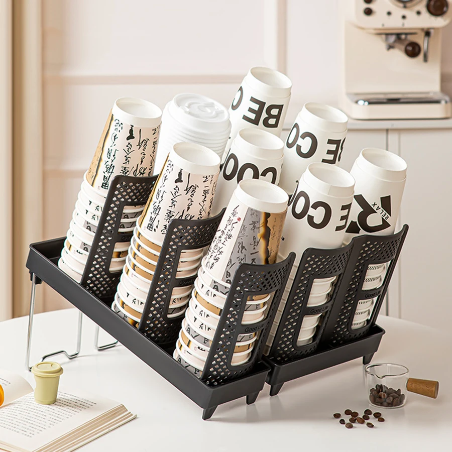 Portavasos de papel desechable multifuncional desmontable, estante de almacenamiento de tazas de café de tamaño individual y doble, montado en el suelo de plástico para el hogar