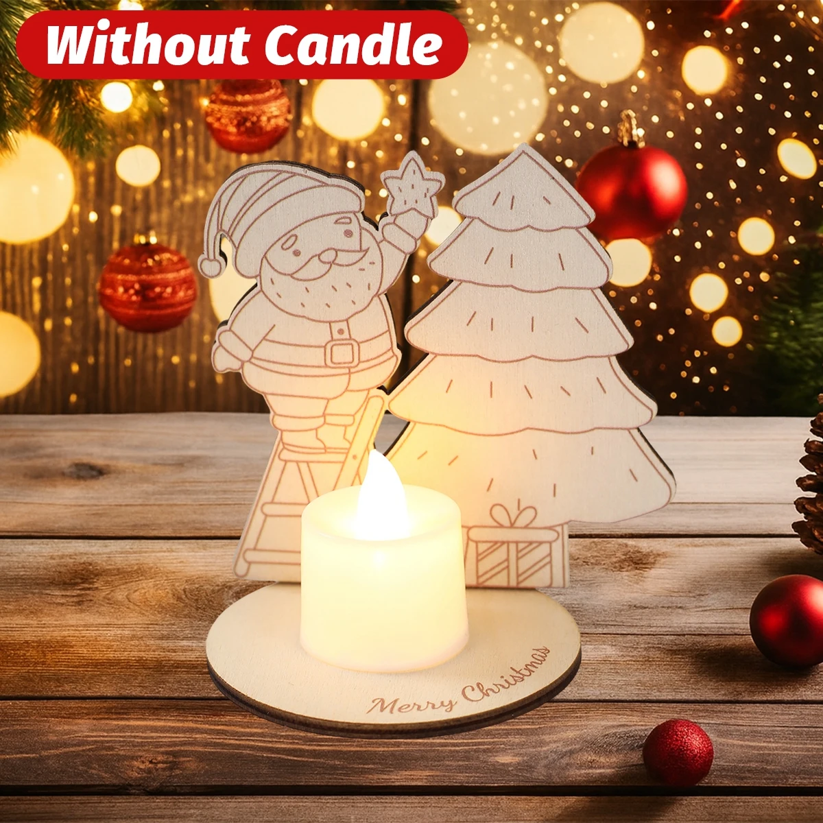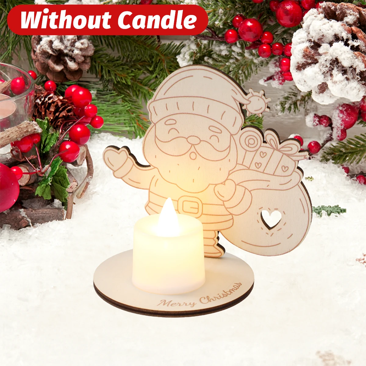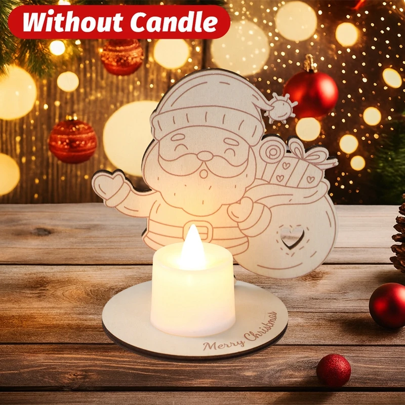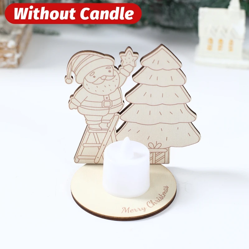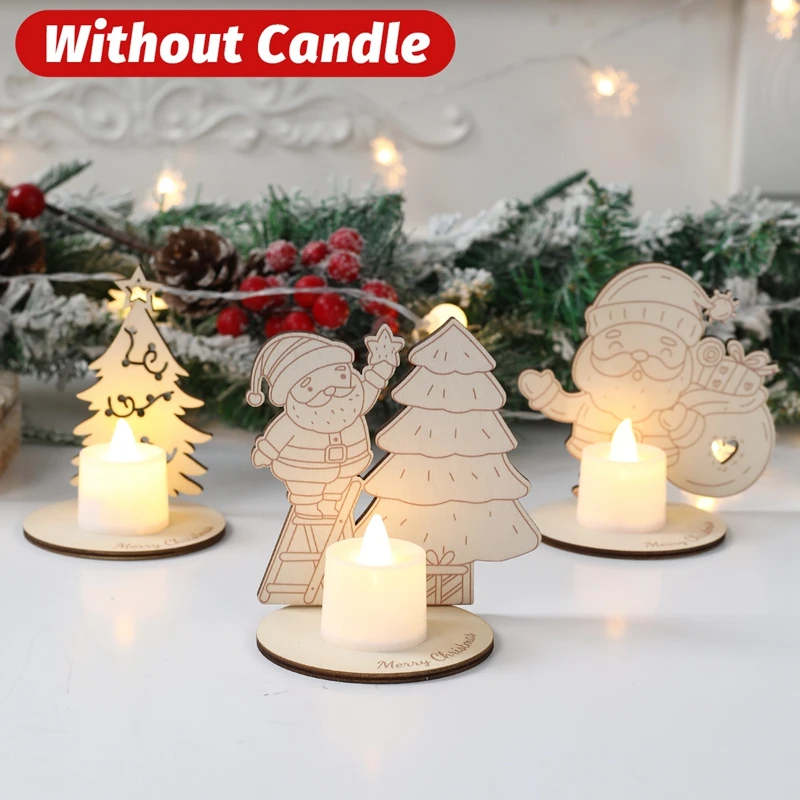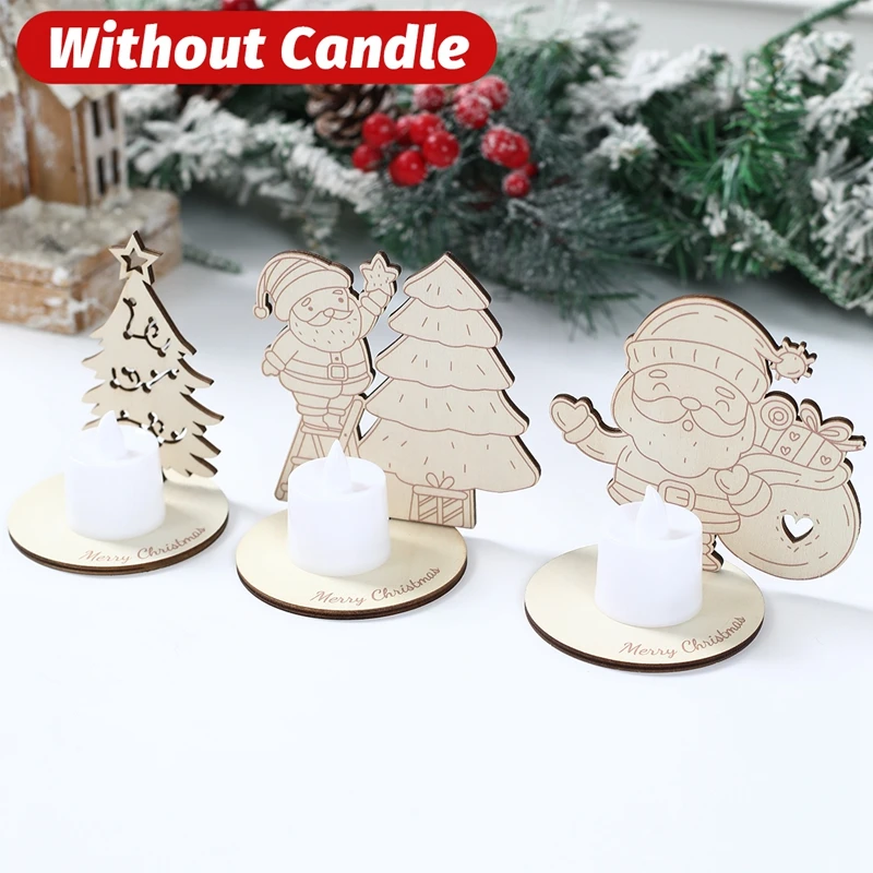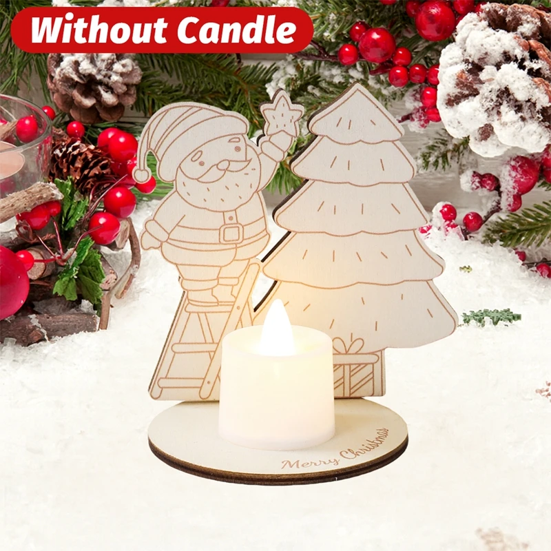 Comprar Portavelas navideñas de madera Santa Claus y diseño de árbol de Navidad decoración de madera de escritorio de Navidad decoración del hogar