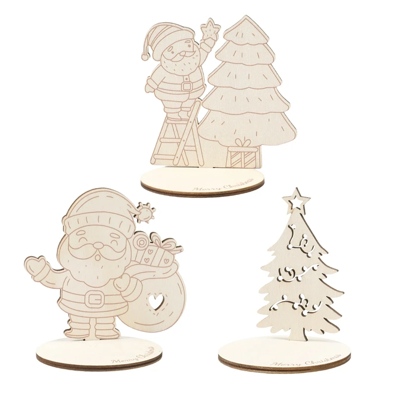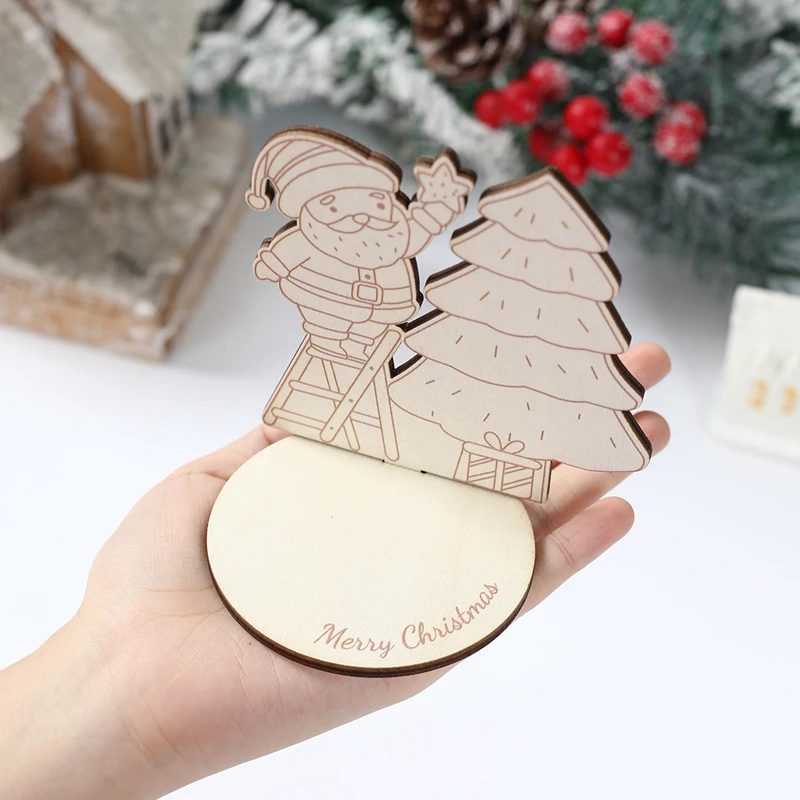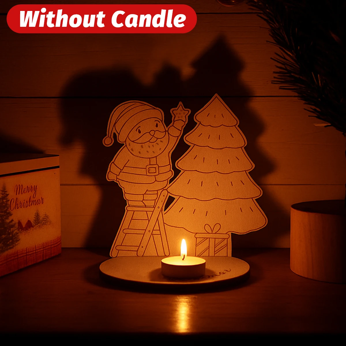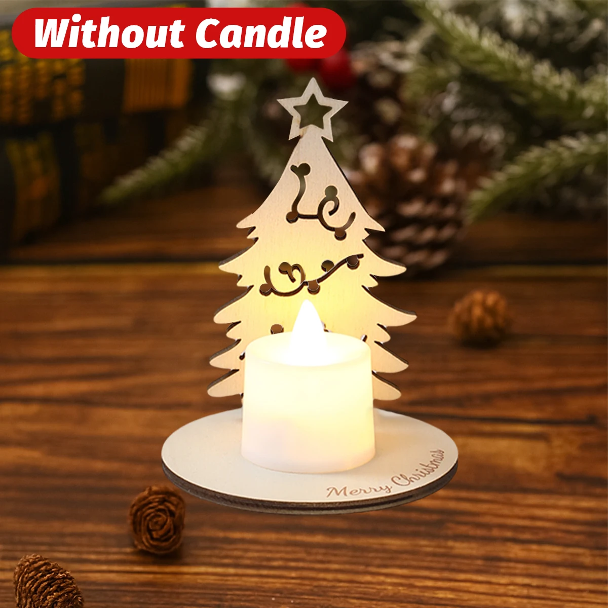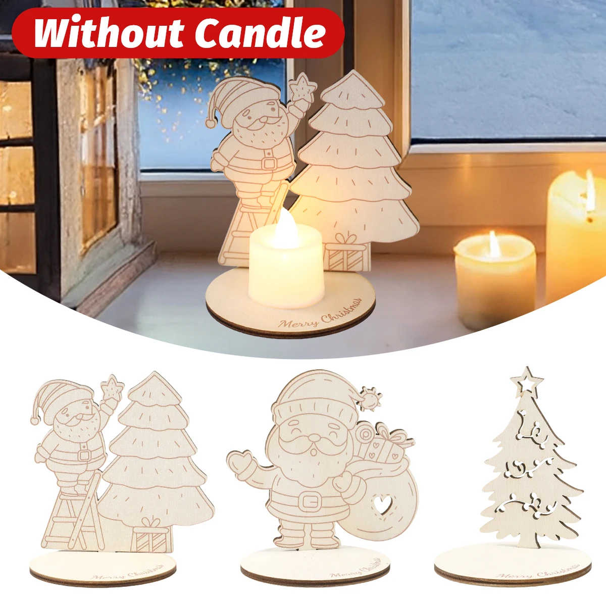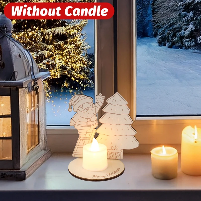 Comprar Portavelas navideñas de madera Santa Claus y diseño de árbol de Navidad decoración de madera de escritorio de Navidad decoración del hogar