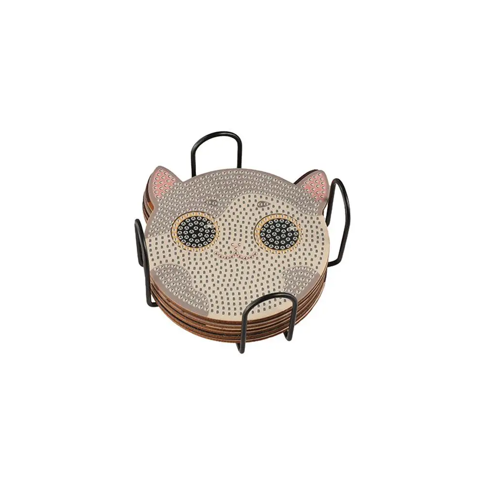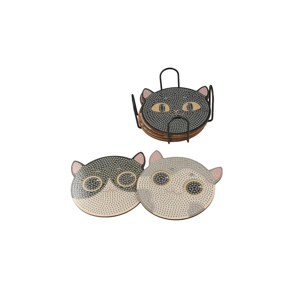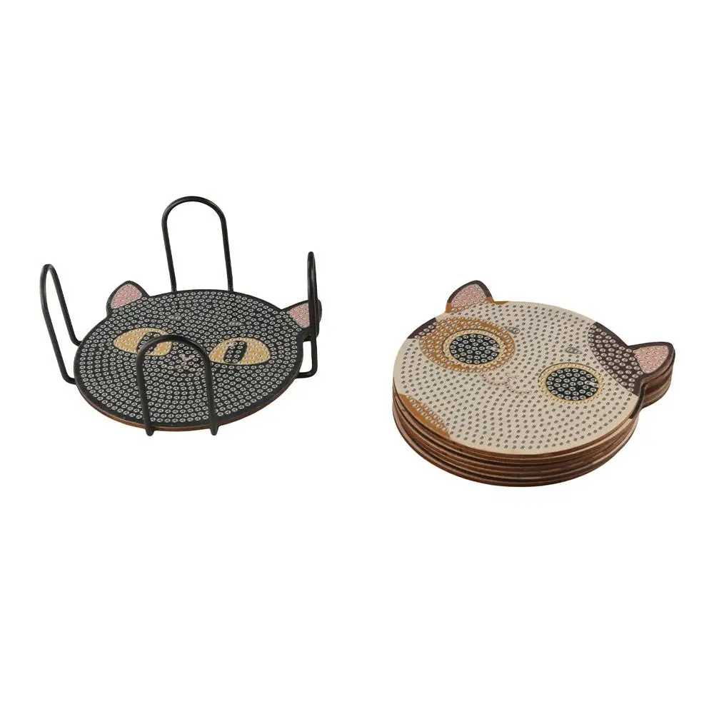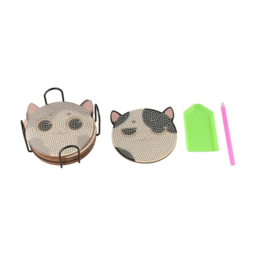 Comprar Posavasos antideslizantes con pintura de diamante DIY, posavasos artísticos con diamantes coloridos de dibujos animados, paquete de Material, mantel creativo con forma de gato DIY