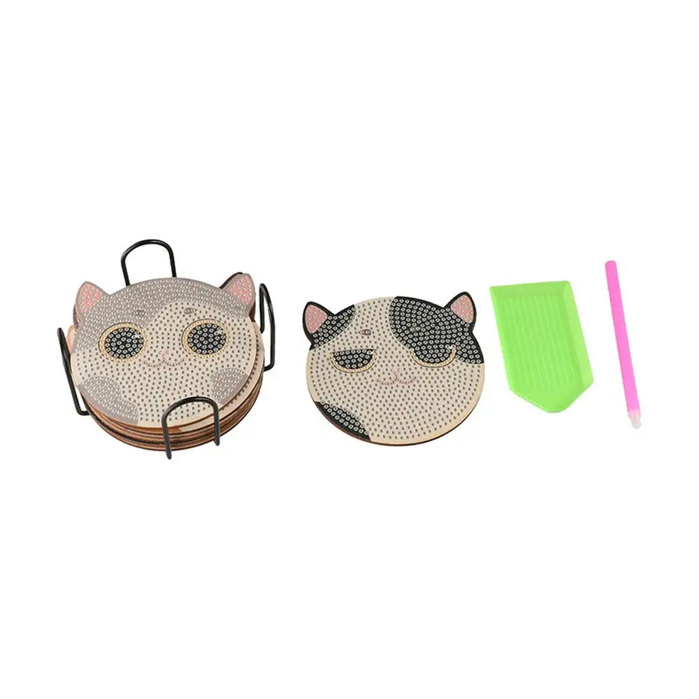 Comprar Posavasos antideslizantes con pintura de diamante DIY, posavasos artísticos con diamantes coloridos de dibujos animados, paquete de Material, mantel creativo con forma de gato DIY