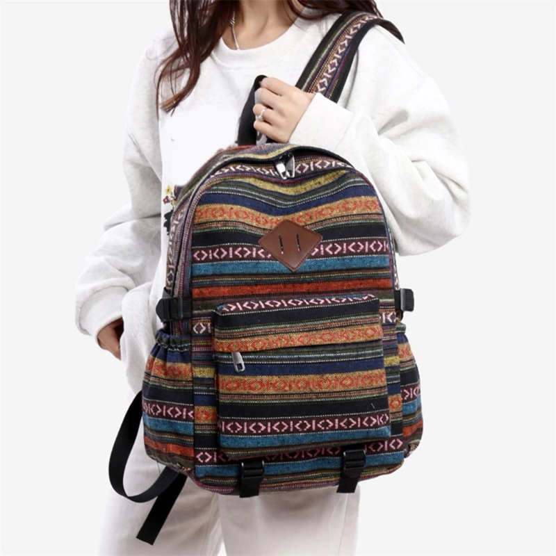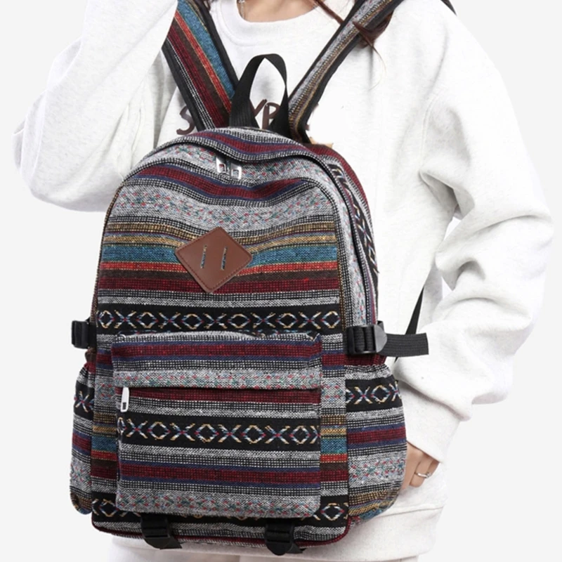 Descubra la combinación de estilos y funcionalidad con nuestra mochila escolar de estilo étnico, que agrega un toque de sofisticación y moda.