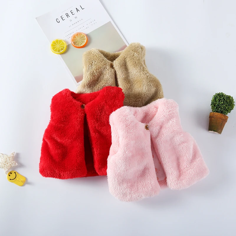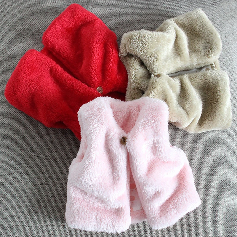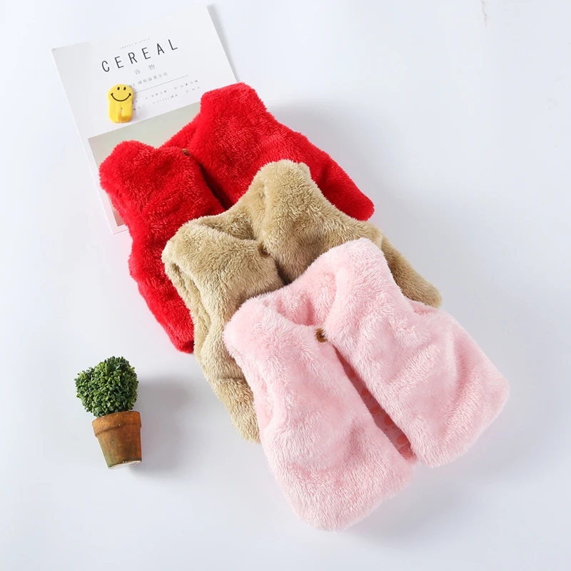 Bebé niña prendas de vestir chaleco abrigo niños ropa coral piel esponjosa sin mangas bebé abrigo niños ropa botón frontal