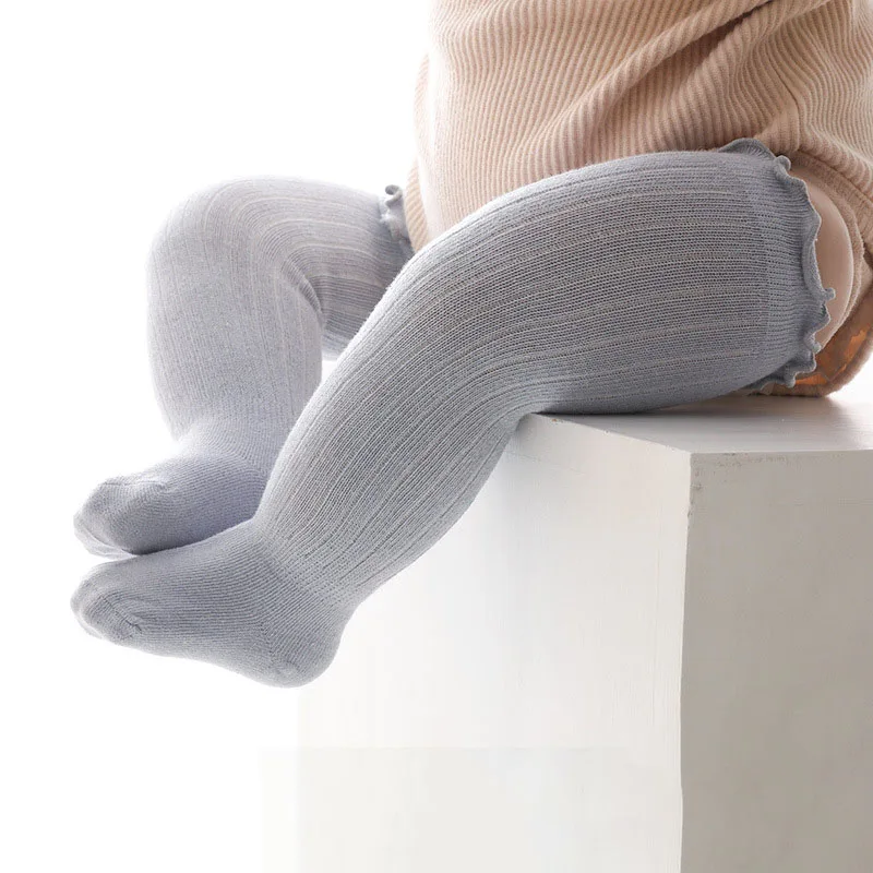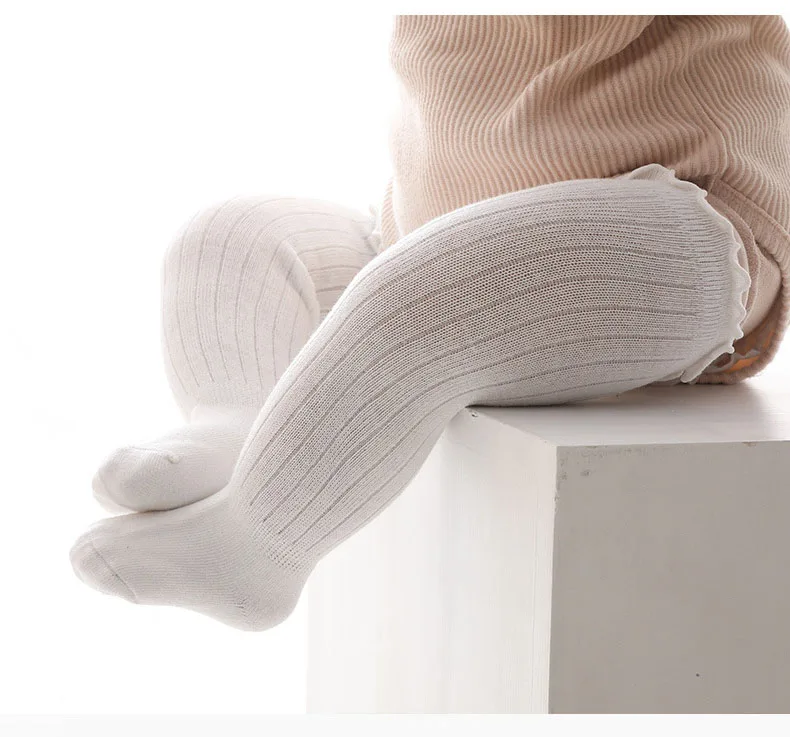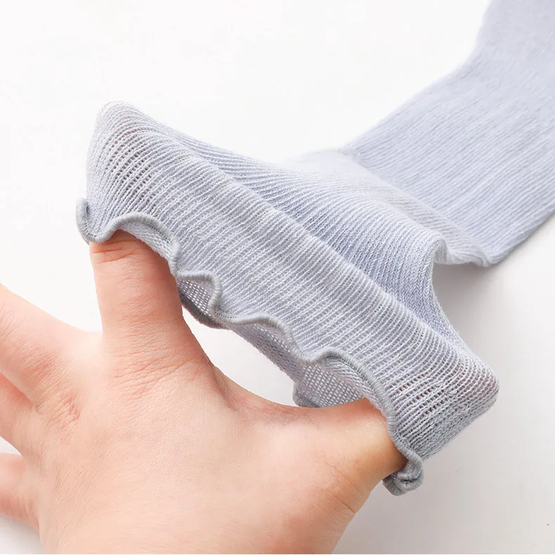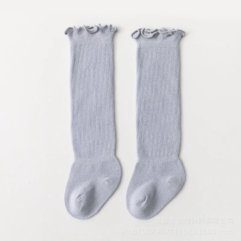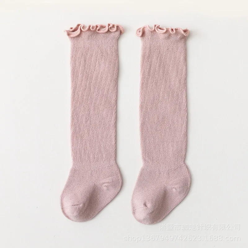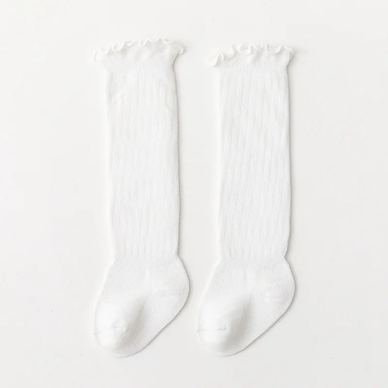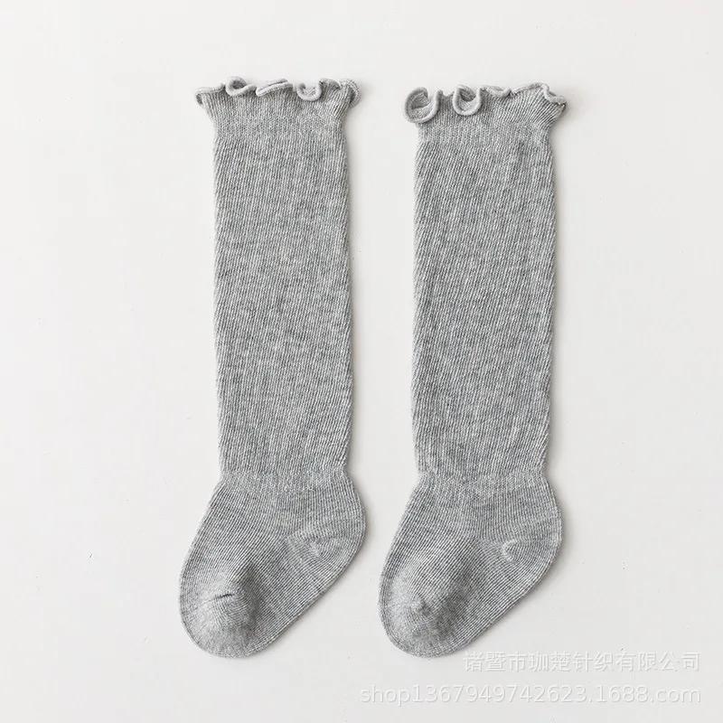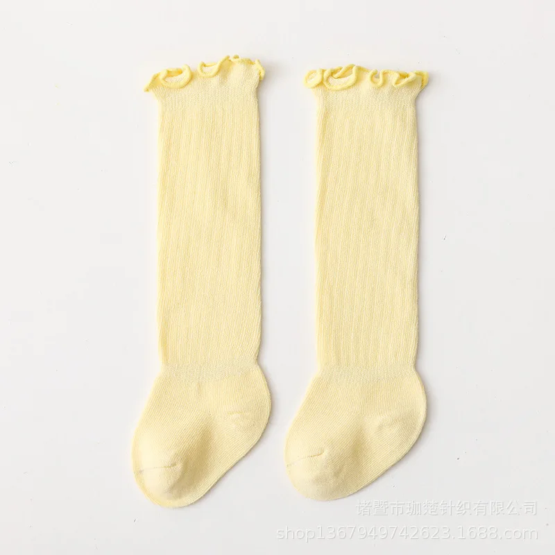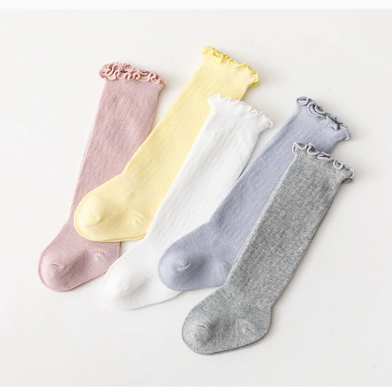 Primavera novedad de verano volantes suelto Color sólido suave hasta la rodilla calcetines largos bebé algodón princesa ropa para recién nacidos medias