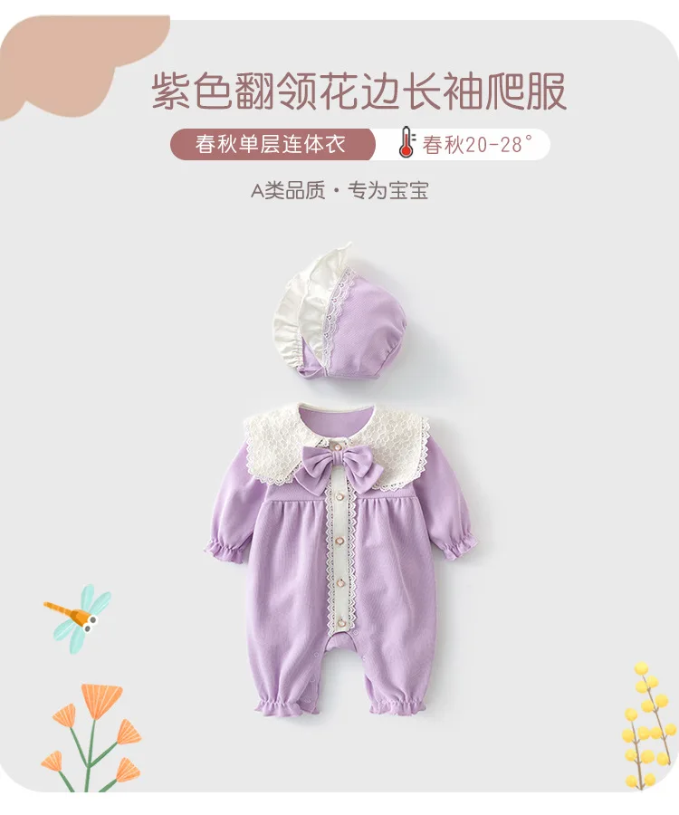 Primavera otoño bebé niña mameluco coreano lindo muñeca Collar arco algodón manga larga monos + sombrero artículos para recién nacidos ropa para niños pequeños BC757