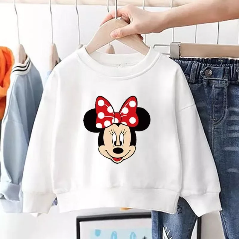 Comprar Primavera otoño disfraz Minnie estampado Beige camiseta de manga larga bebé Unisex lindo suelto Casual manga larga Tops sudadera con cuello redondo