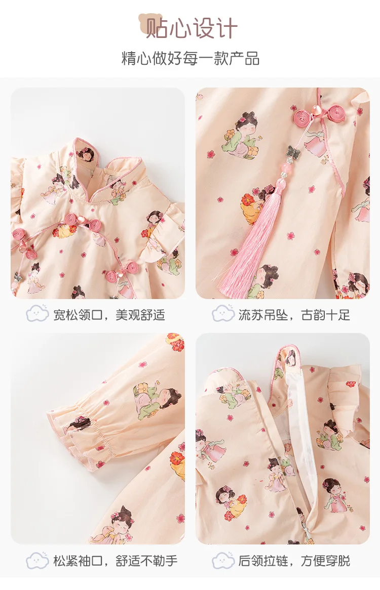 Primavera otoño niños niñas ropa estilo chino dibujos animados lindo estampado algodón manga larga vestidos de bebé vestido de princesa para niños pequeños BC480