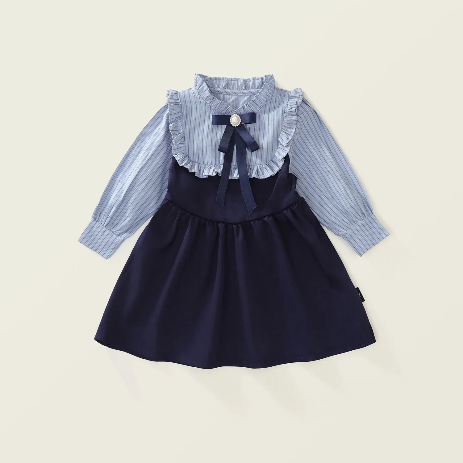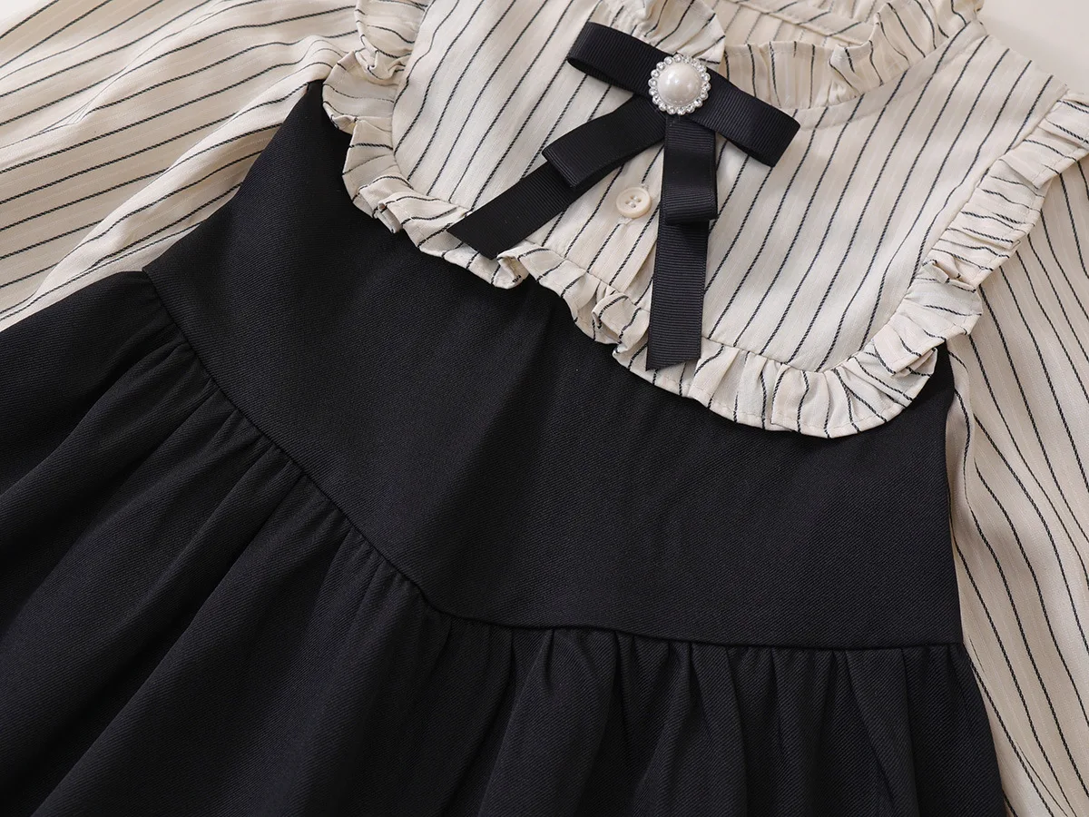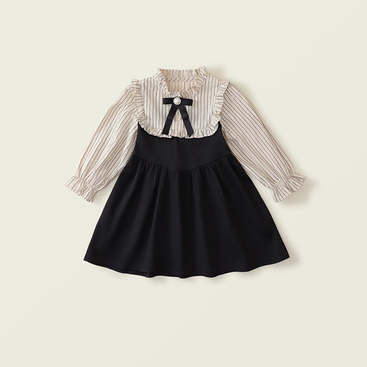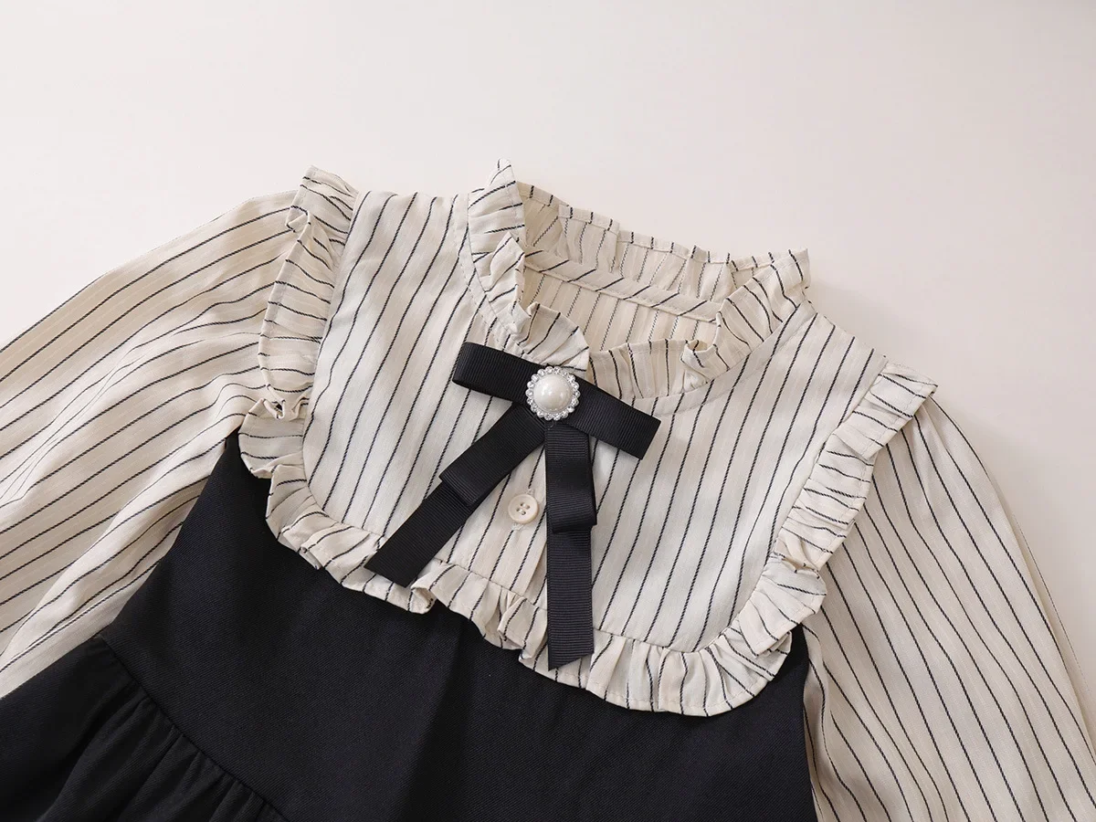 Primavera otoño niños ropa niñas moda coreana lindo arco manga larga raya bebé princesa vestido de cumpleaños vestidos de lujo BC1522
