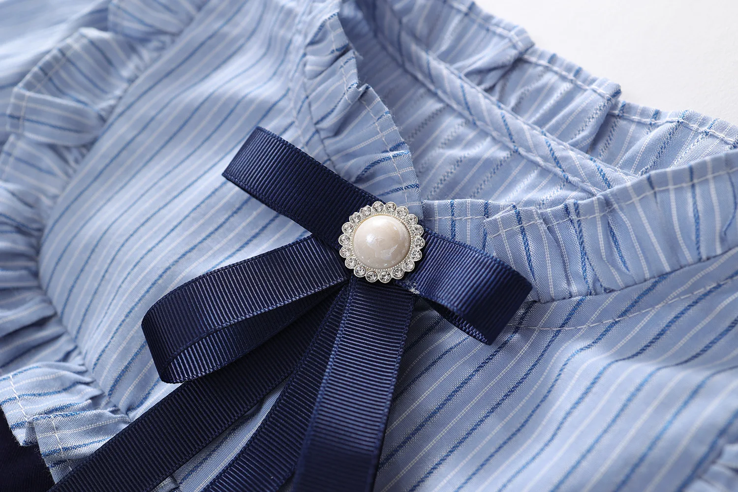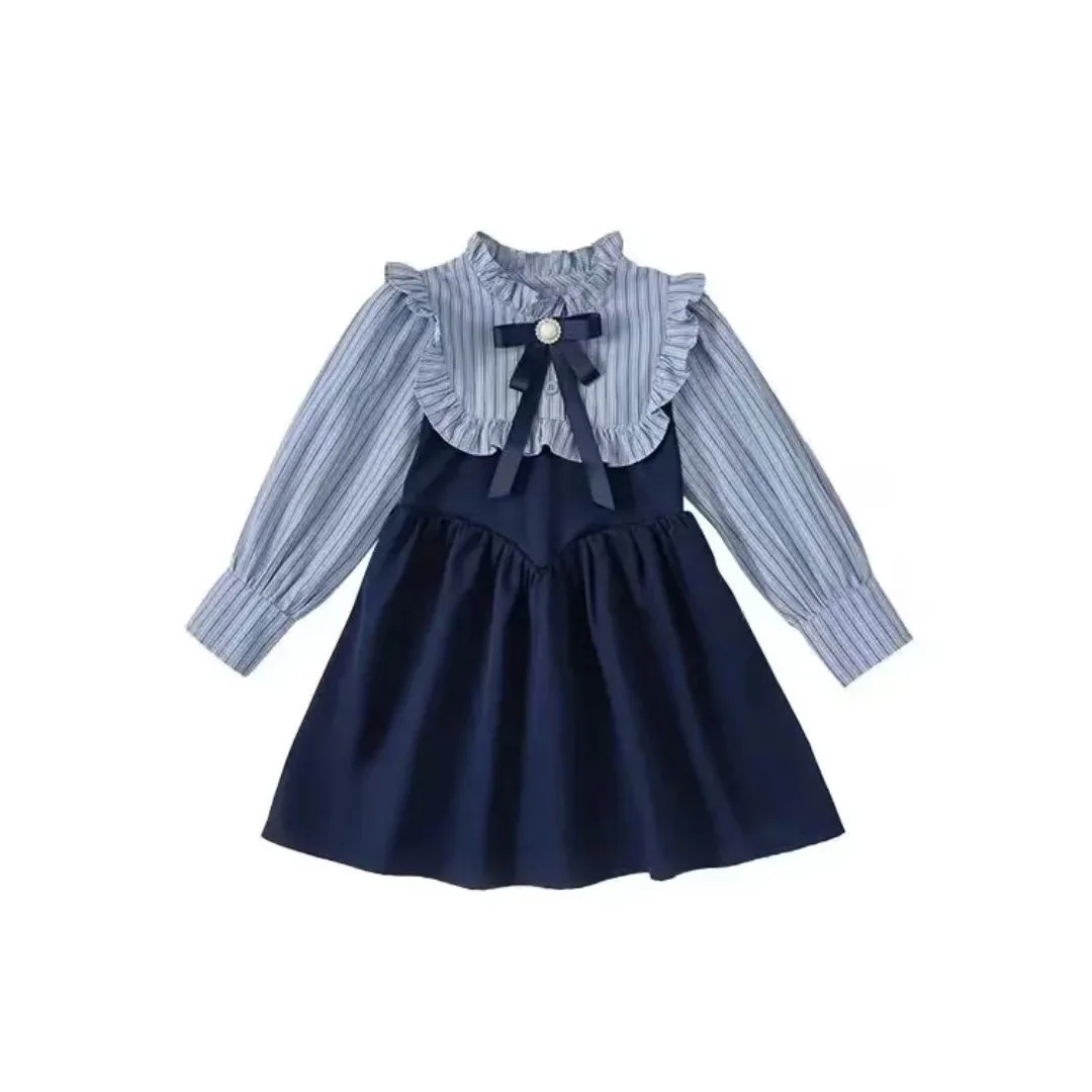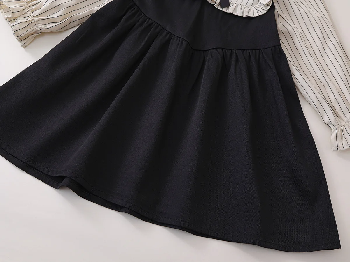 Primavera otoño niños ropa niñas moda coreana lindo arco manga larga raya bebé princesa vestido de cumpleaños vestidos de lujo BC1522