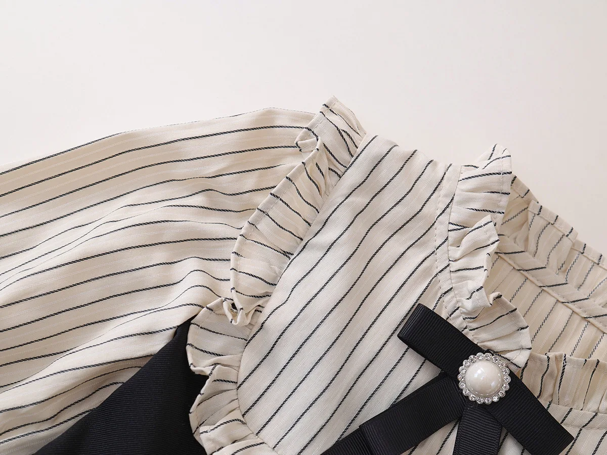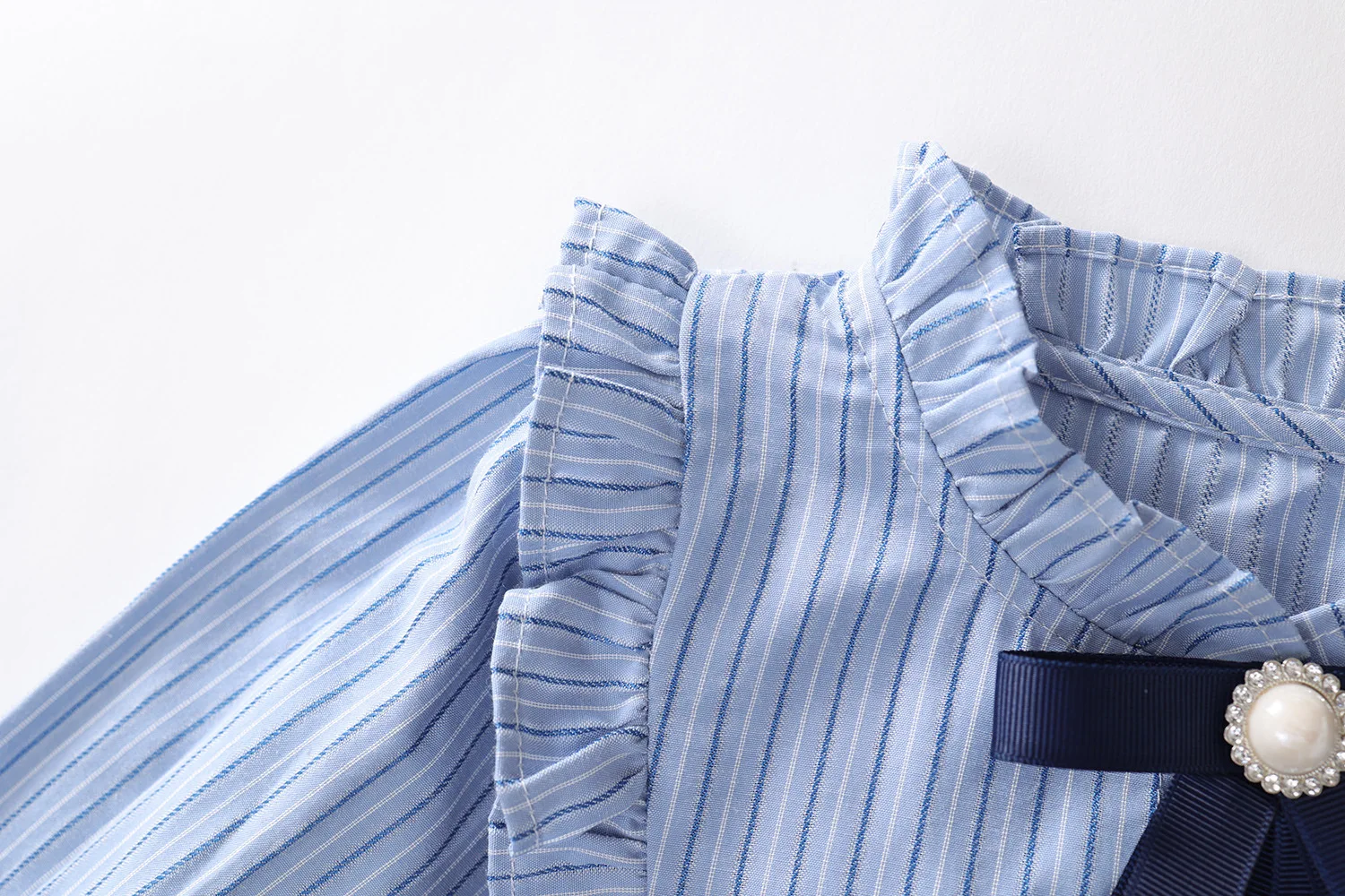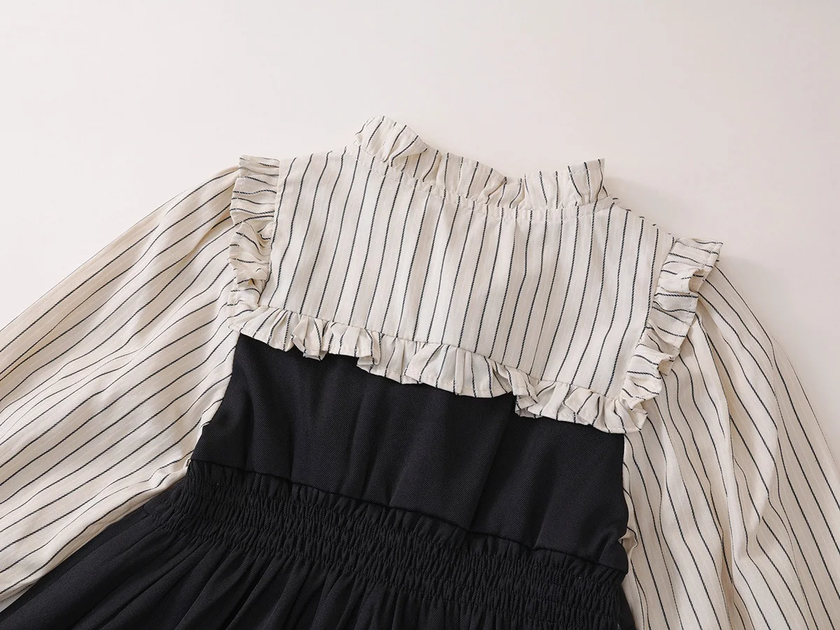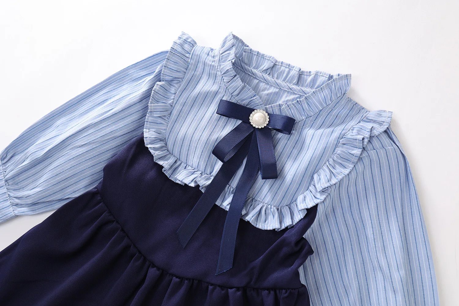 Primavera otoño niños ropa niñas moda coreana lindo arco manga larga raya bebé princesa vestido de cumpleaños vestidos de lujo BC1522