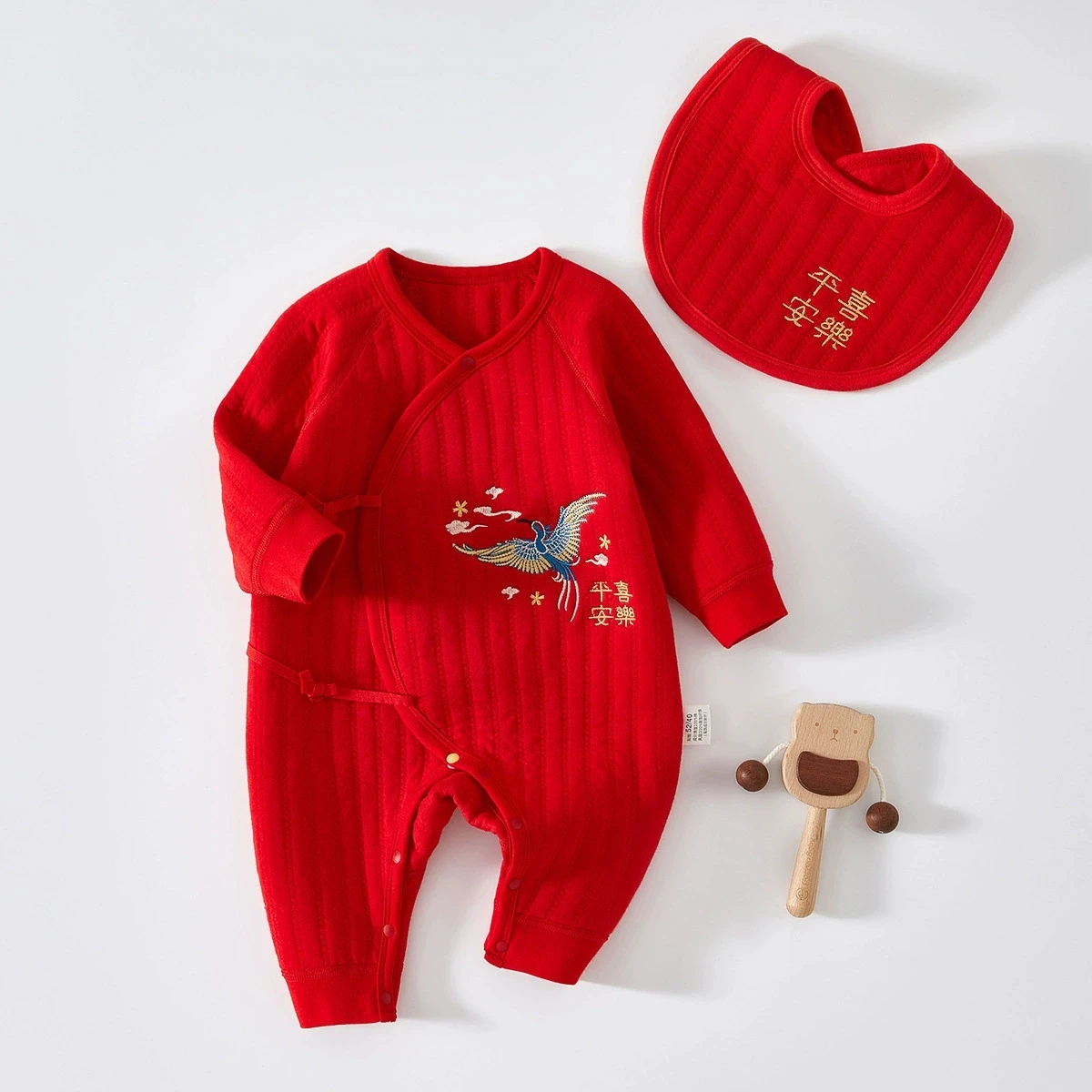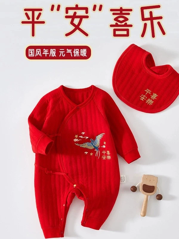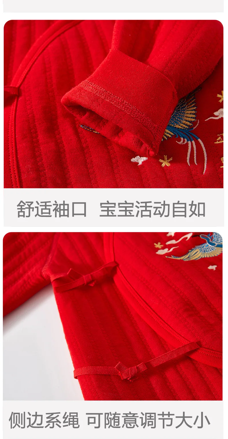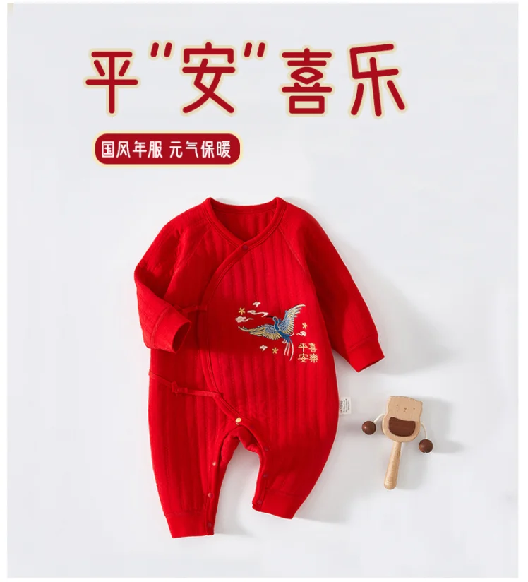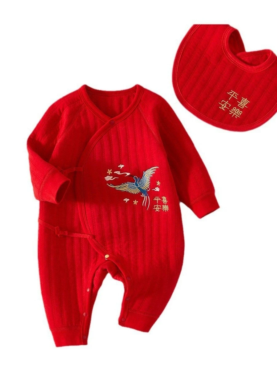 Primavera otoño ropa infantil para niña y niño estilo chino Año nuevo lindo rojo monos de manga larga peleles + Baberos bebé artículos para recién nacidos BC522
