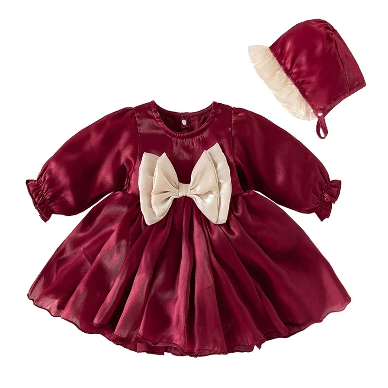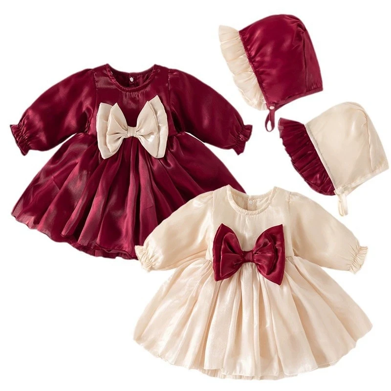 Primavera otoño ropa de niña de 0 a 6 meses coreano lindo arco de malla de manga larga vestidos de princesa para niños + sombrero cumpleaños ress BC1633