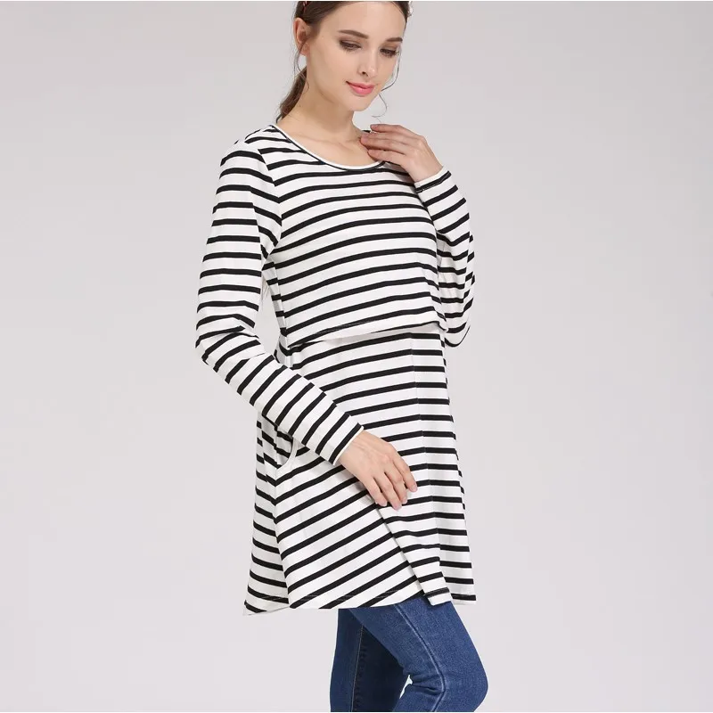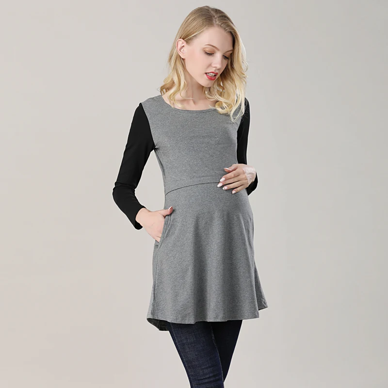 Comprar Primavera otoño Top de lactancia Tops de lactancia ropa de maternidad larga de algodón para mujeres embarazadas camiseta de maternidad