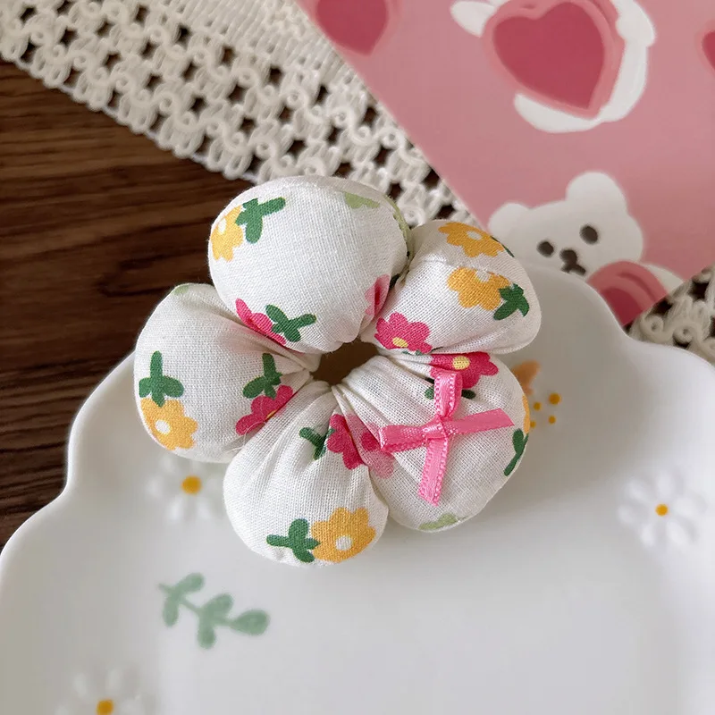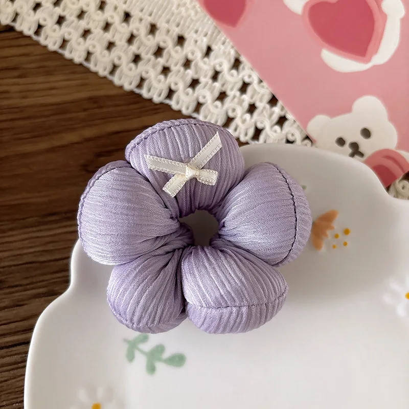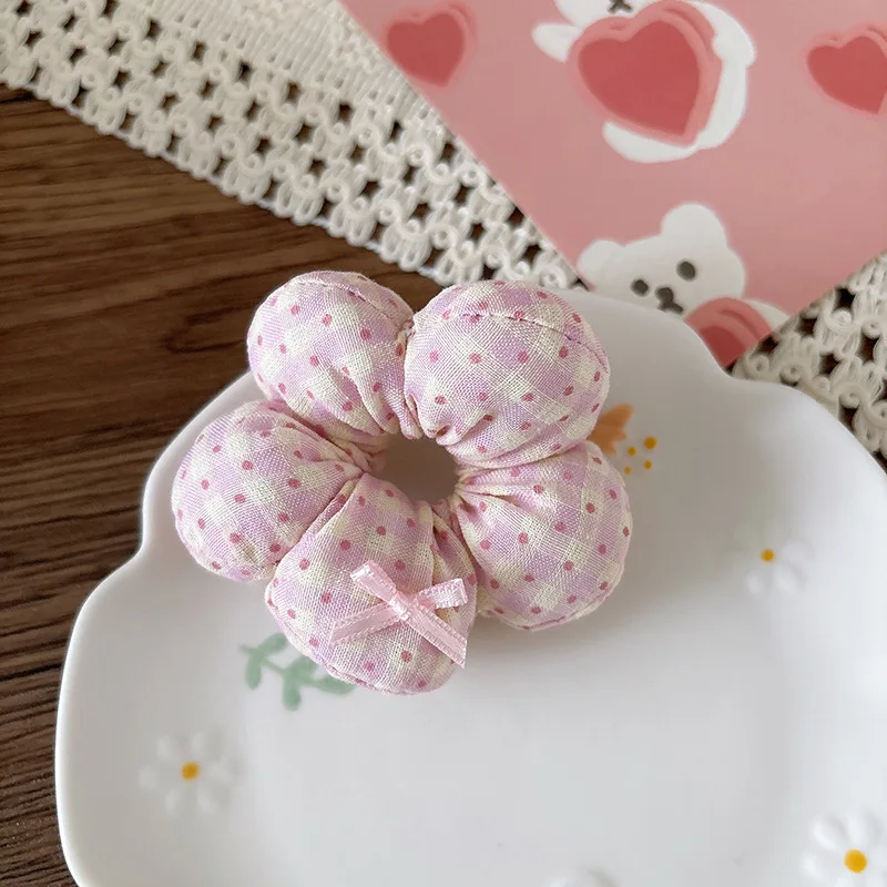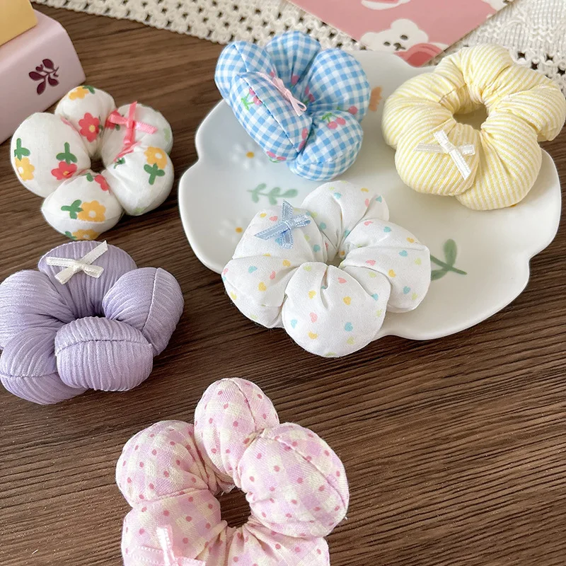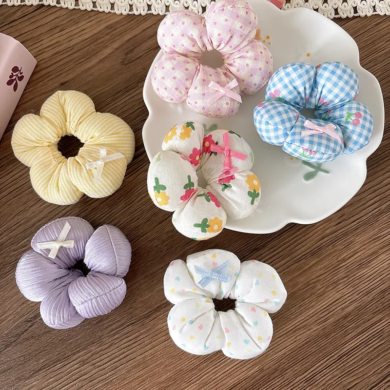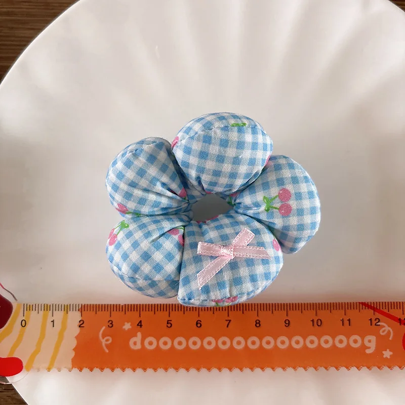 Primavera Verano dulce tela versátil algodón tridimensional flor intestino anillo Floral arco niña bola pelo anillo