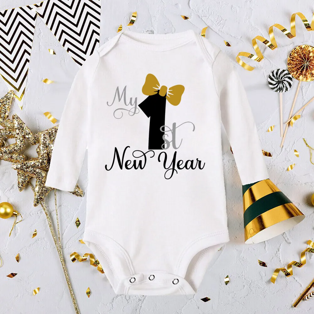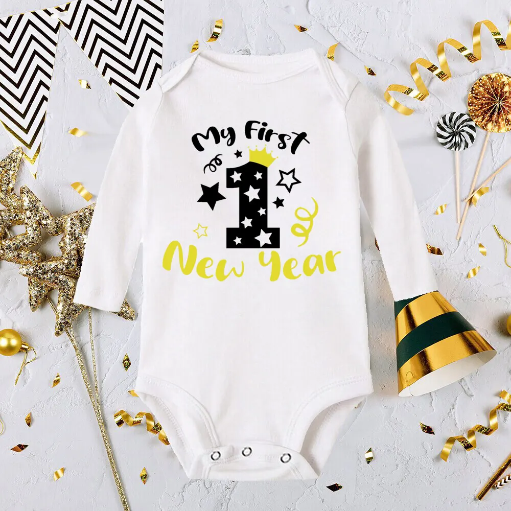 Mi primer año nuevo 2025, Body para bebé, pelele infantil, regalo de Año Nuevo para bebé, mono de manga larga para niño, ropa, regalos de ducha para recién nacido